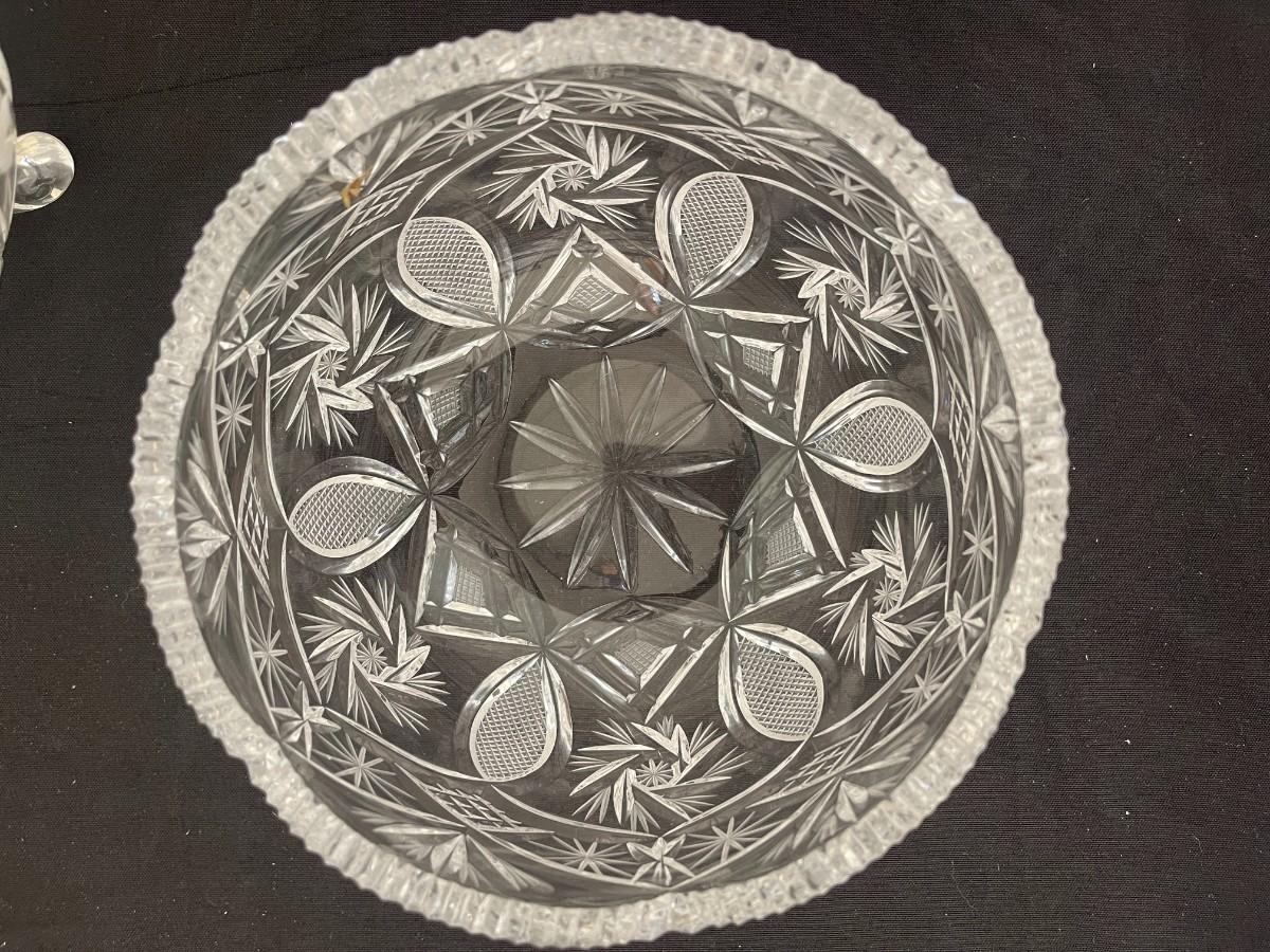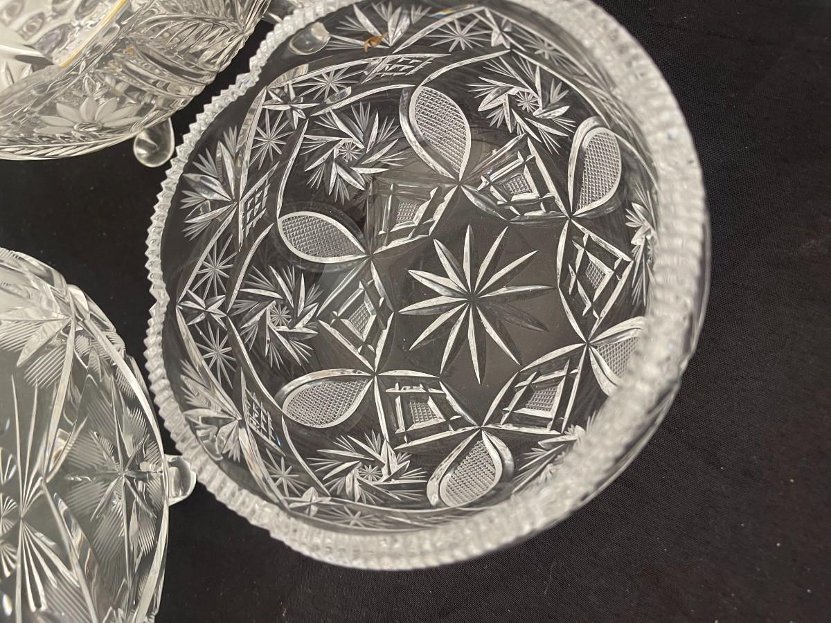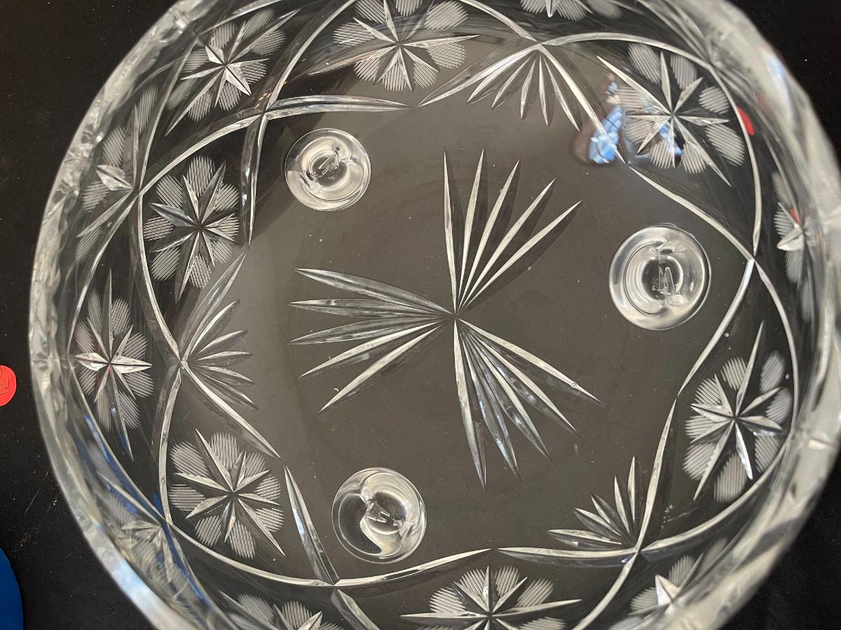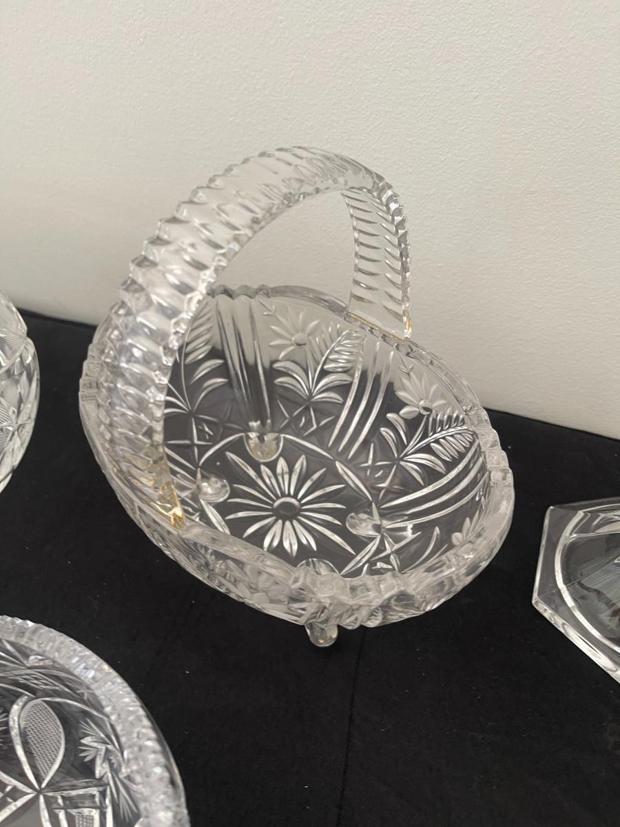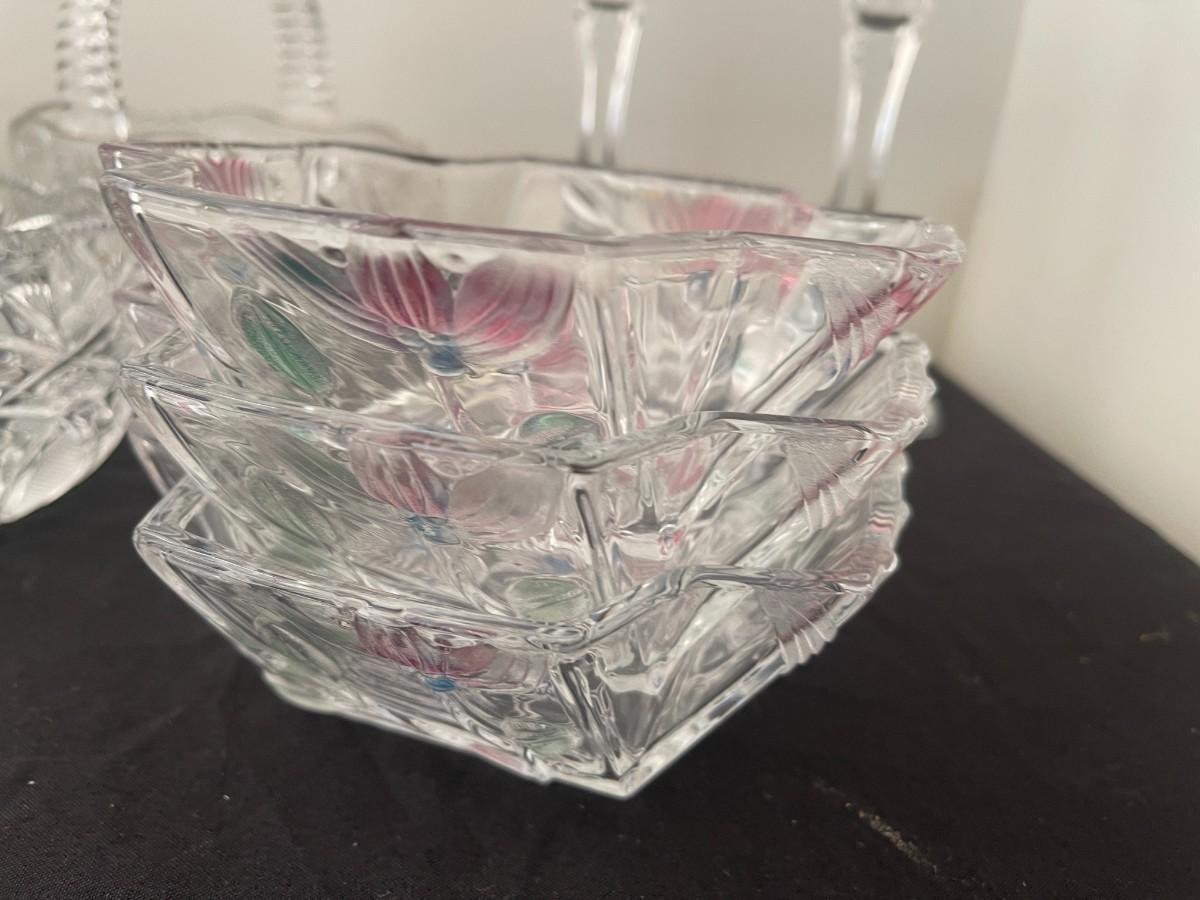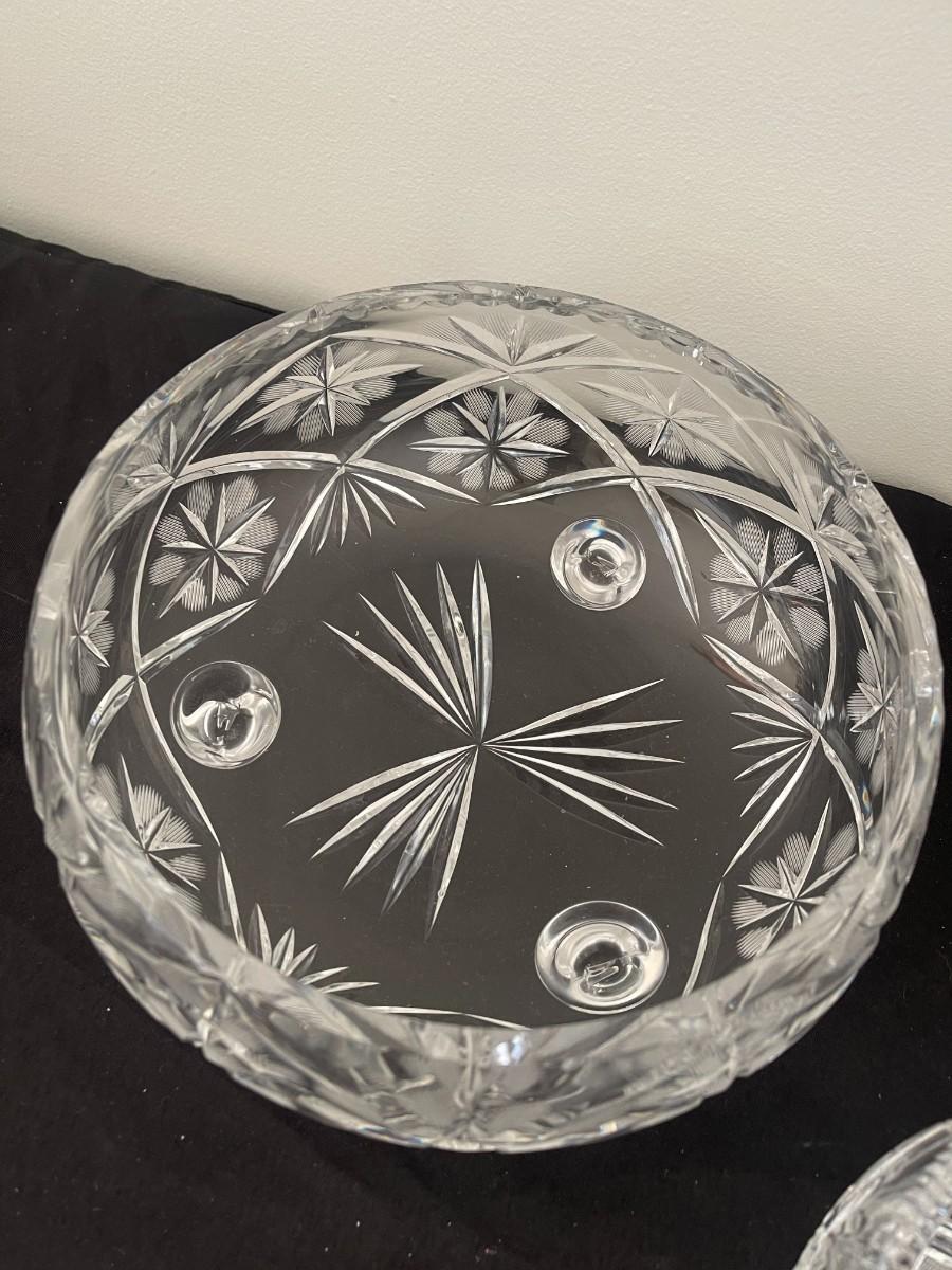 Lot of crystal and glass bowls and candlesticks. No obvious chips or cracks.