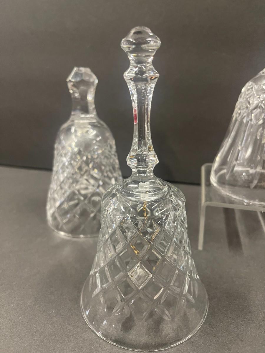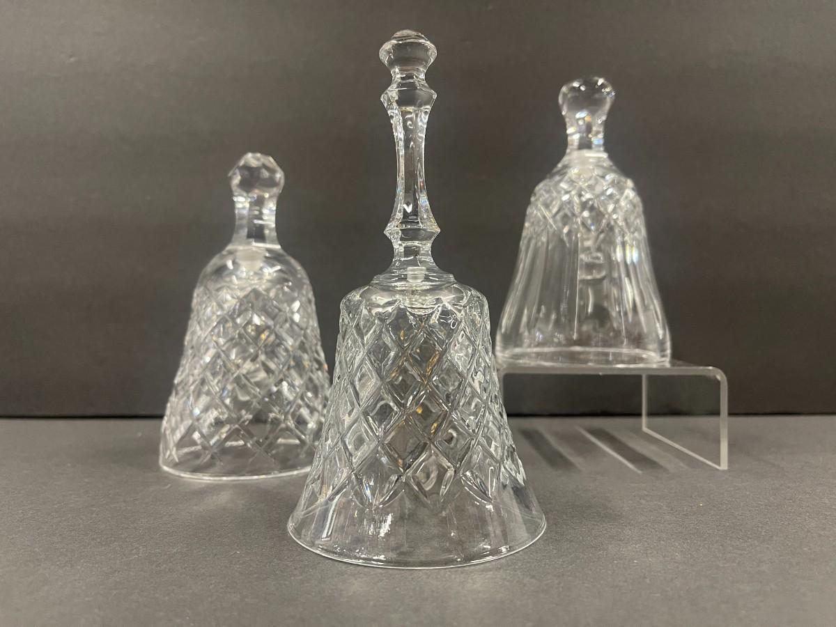 Lot of Crystal bells. 2 identical Waterford bells (5") and one other, unmarked (6")