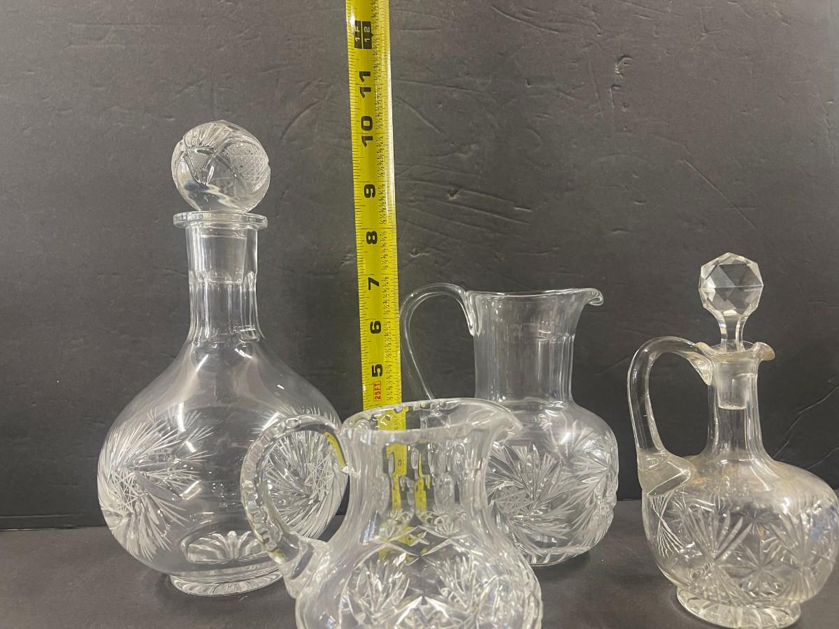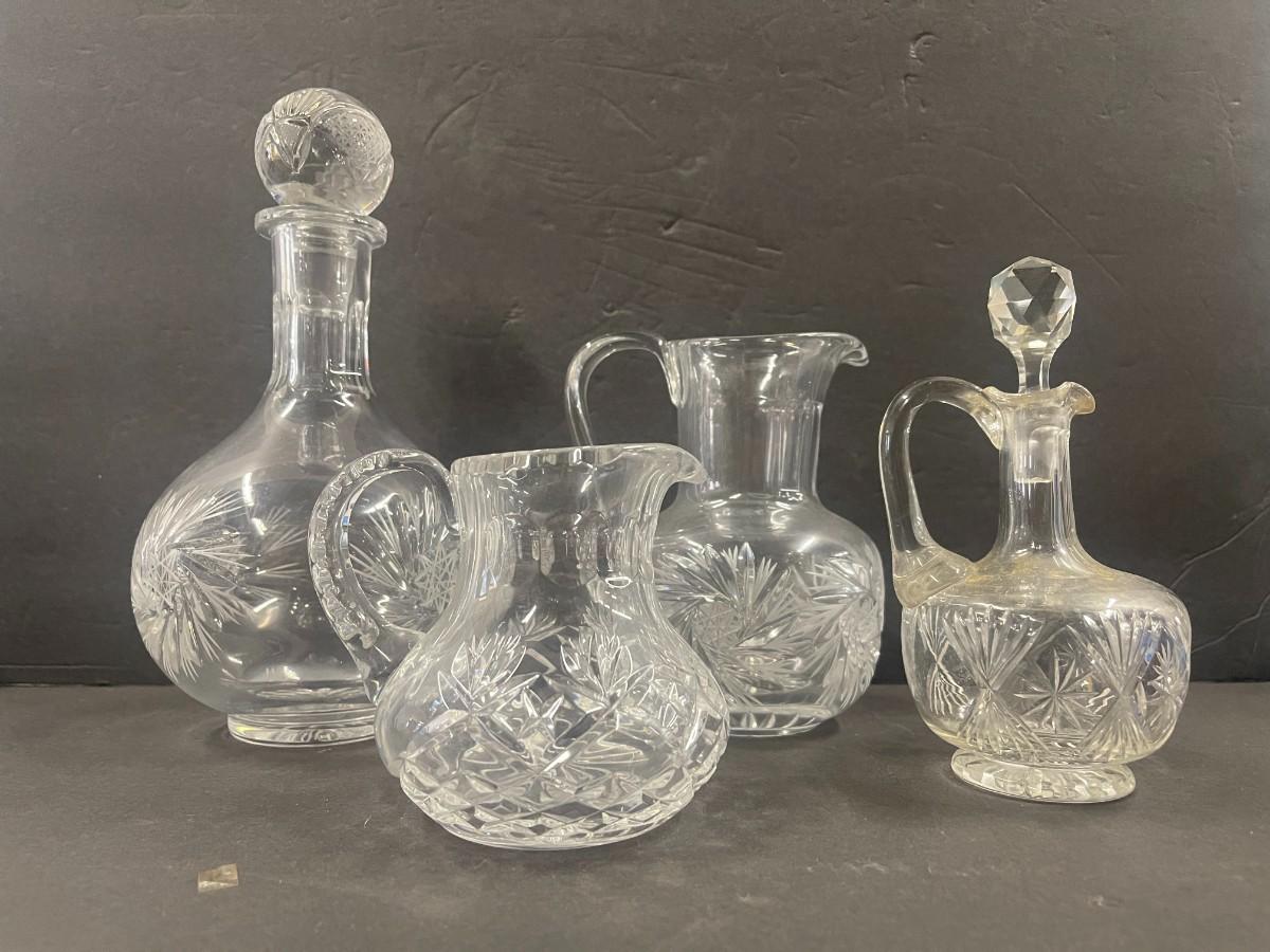 Lot of Crystal Decanters, Pitchers & a Cruet