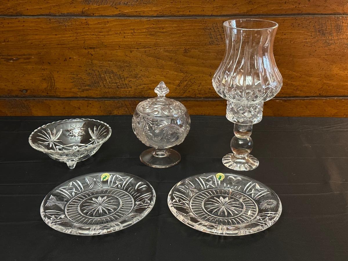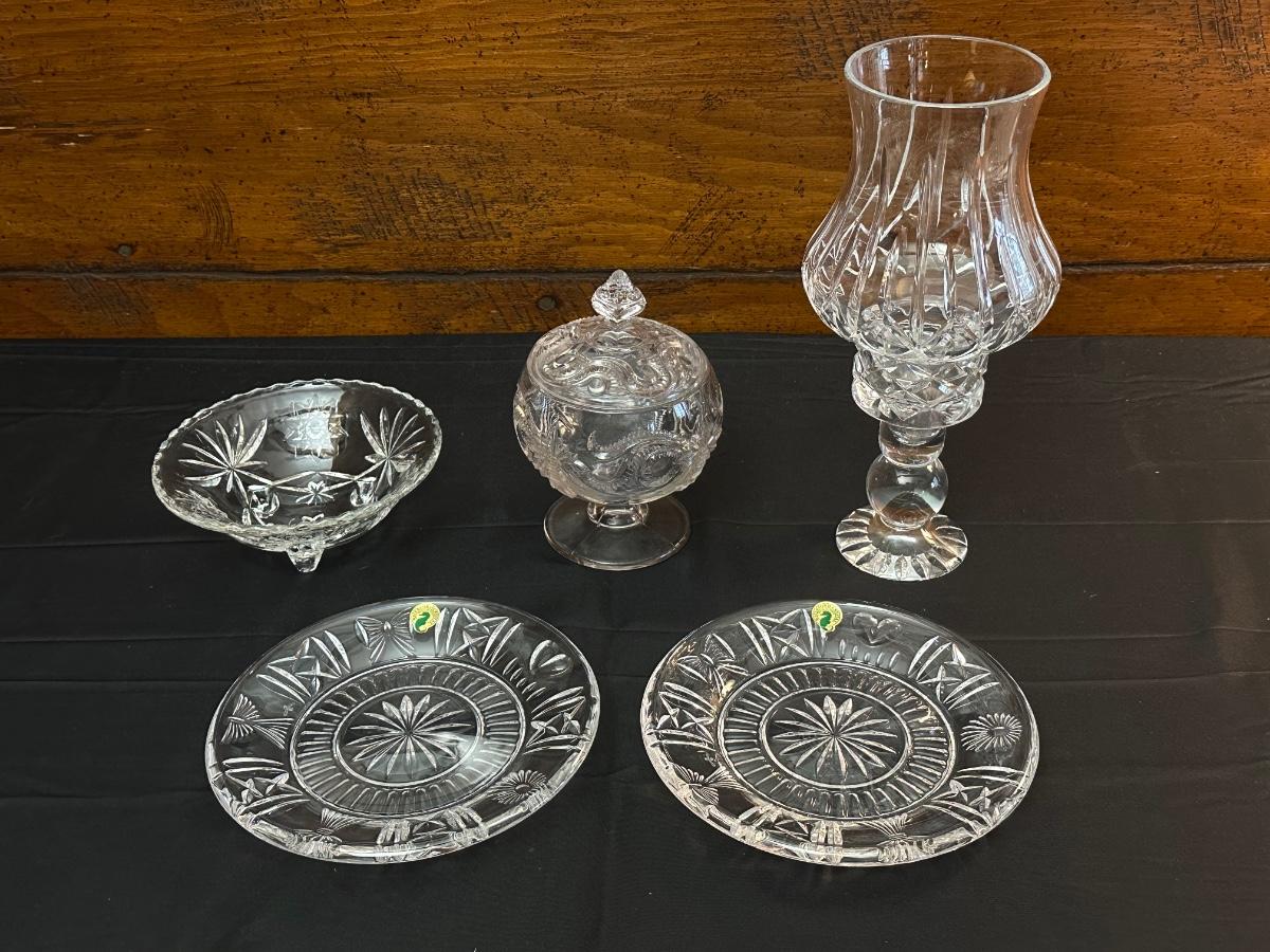 Two plates are by Waterford Crystal and are apart of The Millennium Collection! A Toast to the year 2000. A Candle holder, Candy and trinket dish are also included.