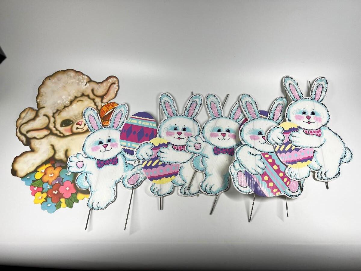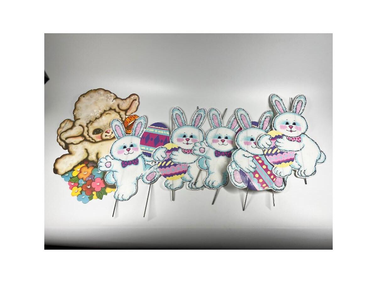 Lot of Cute Easter Bunny & Lamb Yard Art Signs