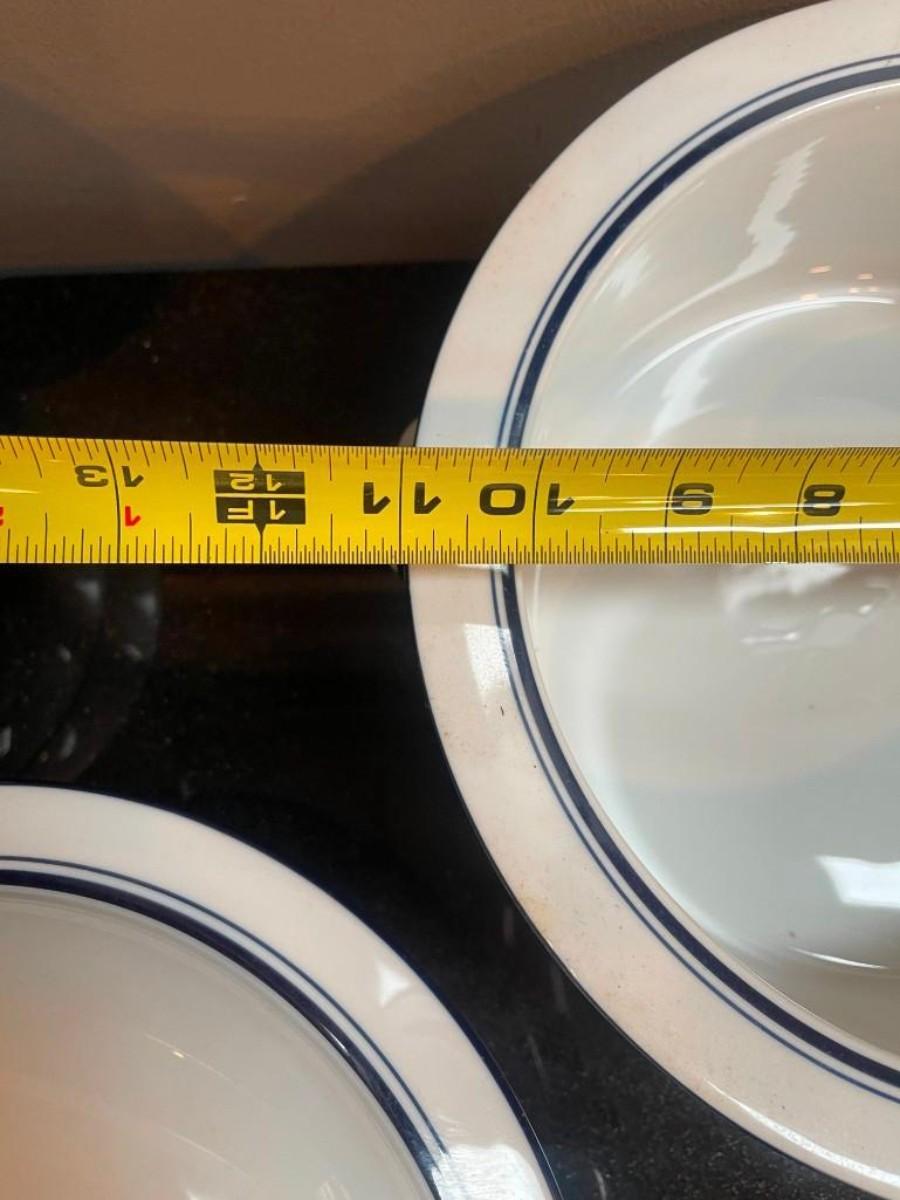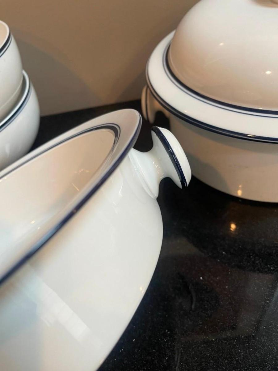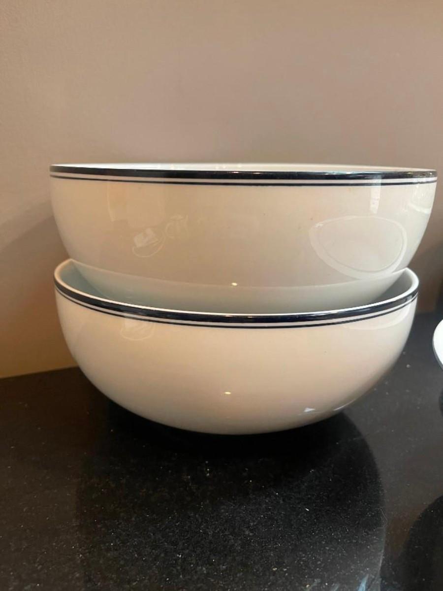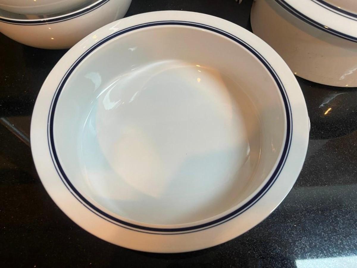 Lot of Dansk Bistro White Serving Dishes with Blue Rims