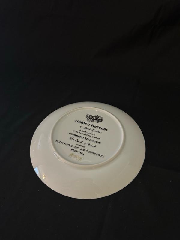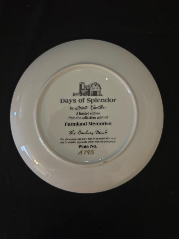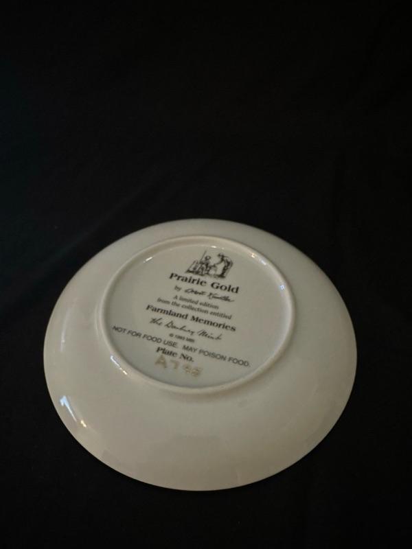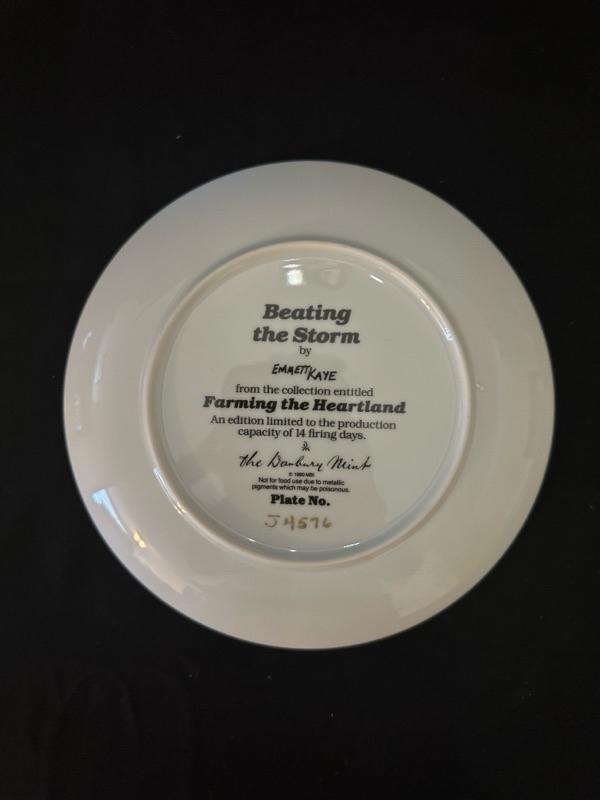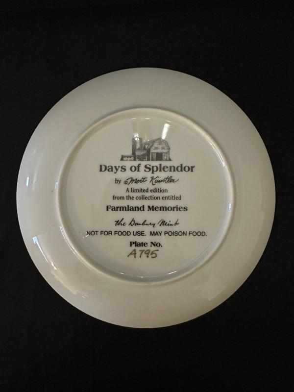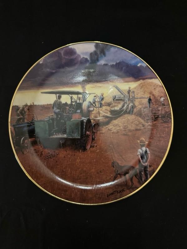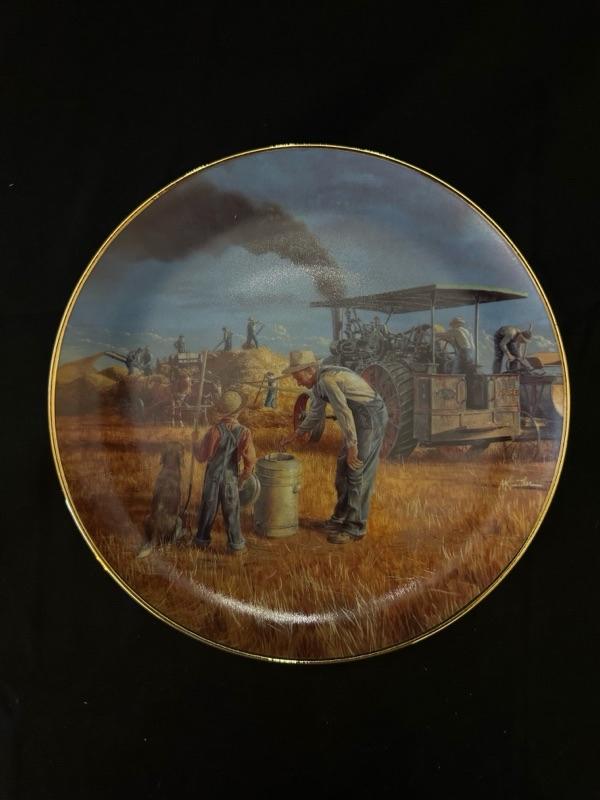 Plates designs include "Days of Splendor", "Prairie Gold" and "Golden Harvest" by Mort Kunstler and "Beating the Storm" and "Bountiful Harvest" by Emmett Kaye,