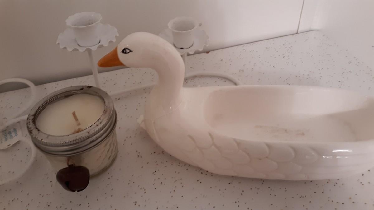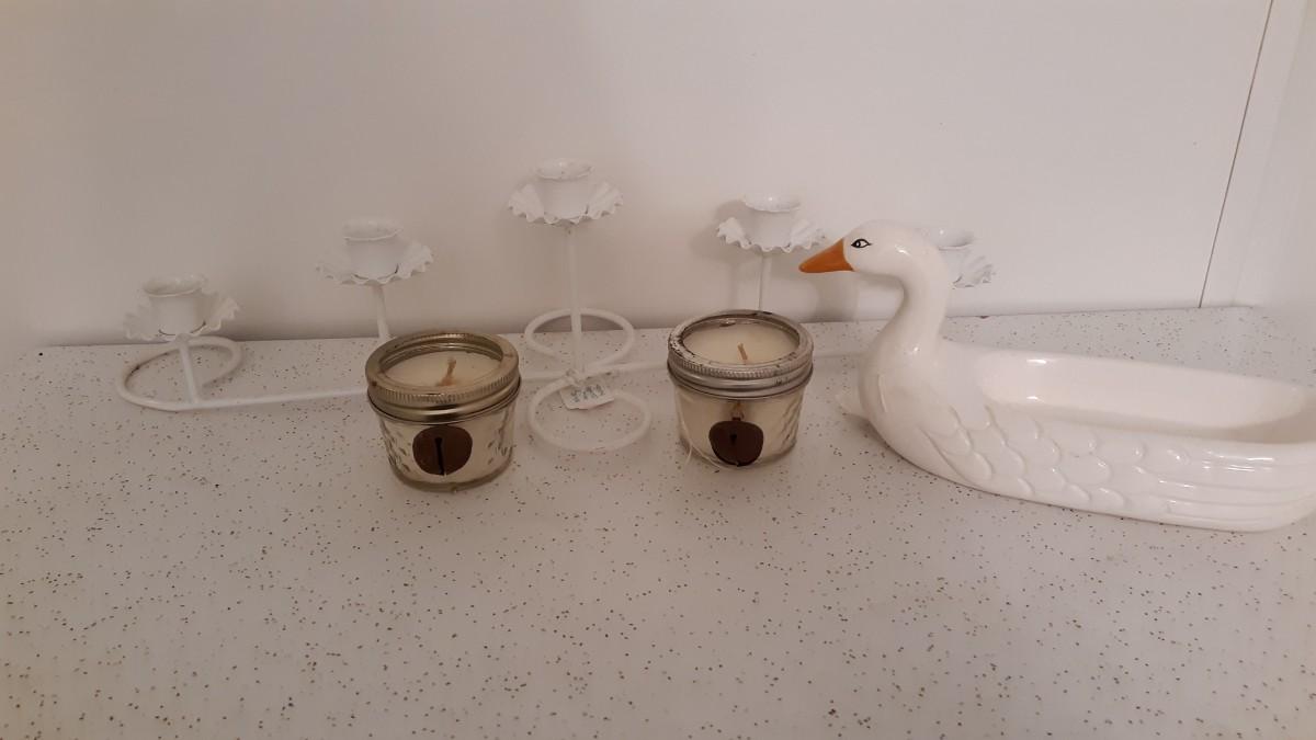 Lot of Decor -candleholder, duck soap dish, two small candles