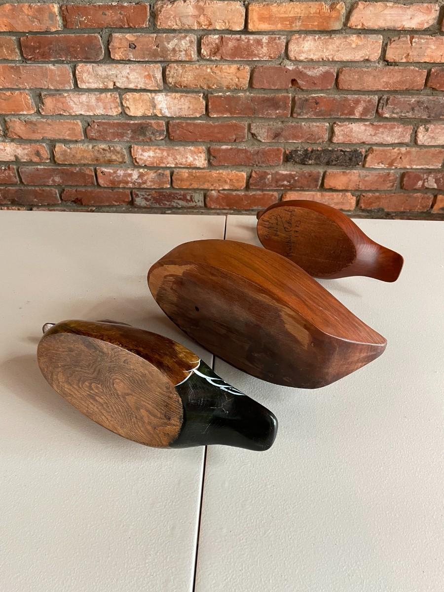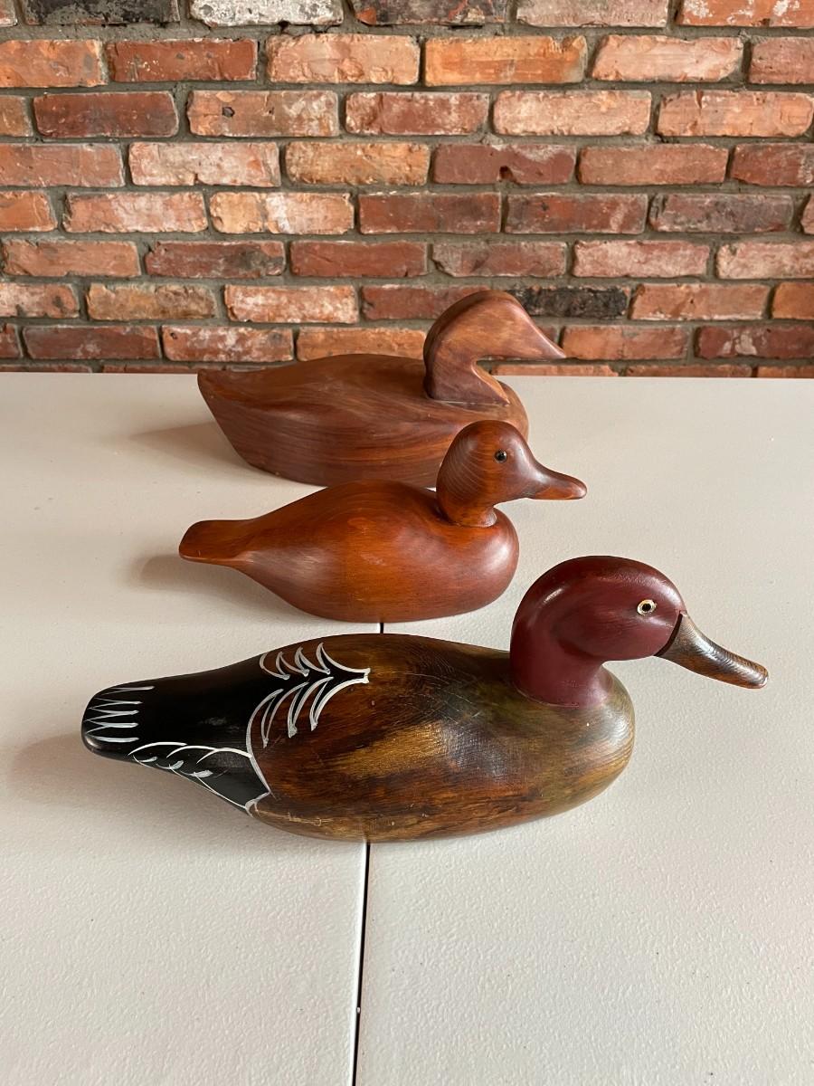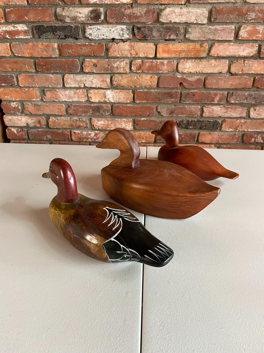 3 wooden carved ducks are available in this lot. Largest: 13 L x 6w x 6H