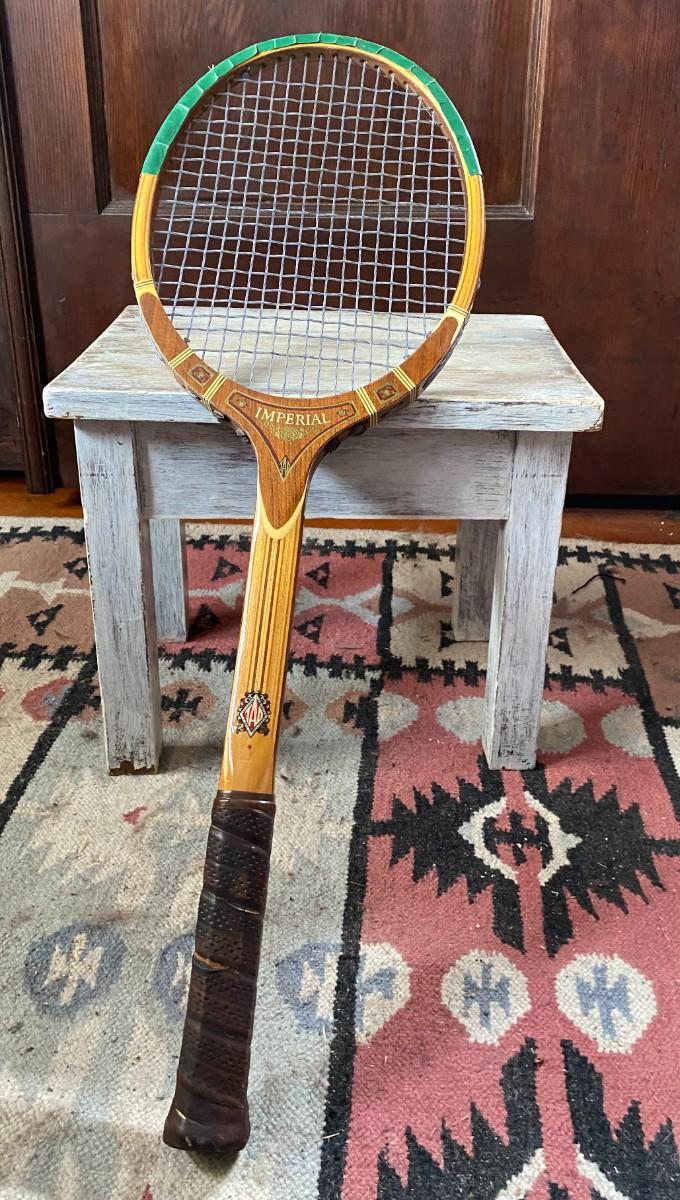 Lot of decorative items and vintage sports equipment