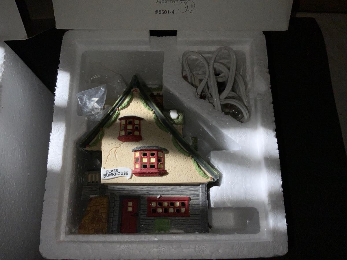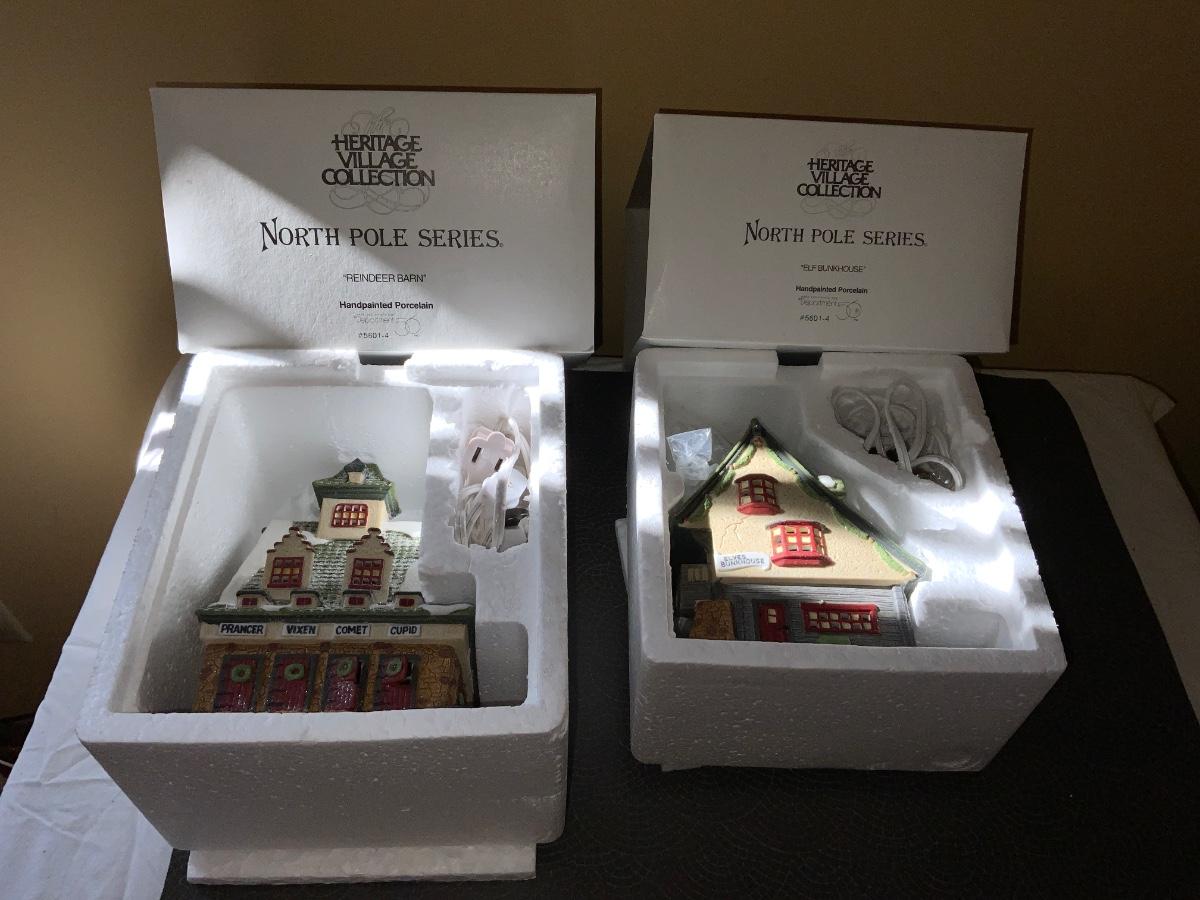 A lot of department 56 Heritage Village collection North pole. Reindeer barn and elf bunk please see photos for condition. Items come in original boxes.
