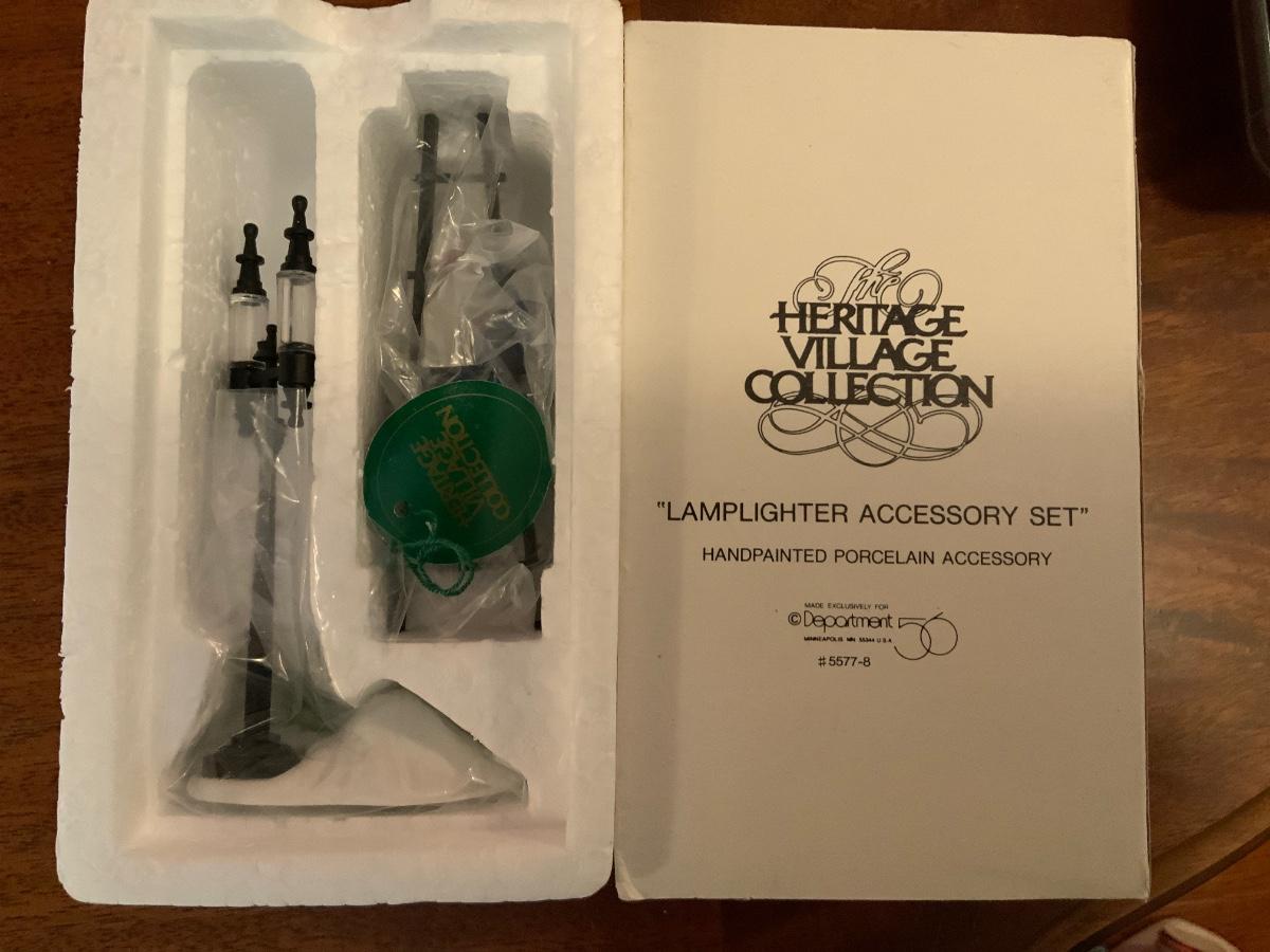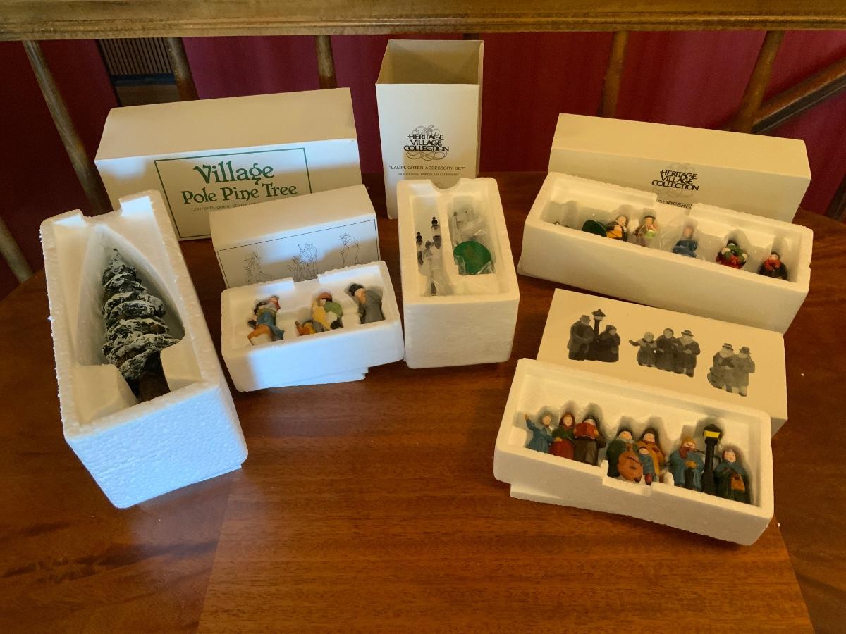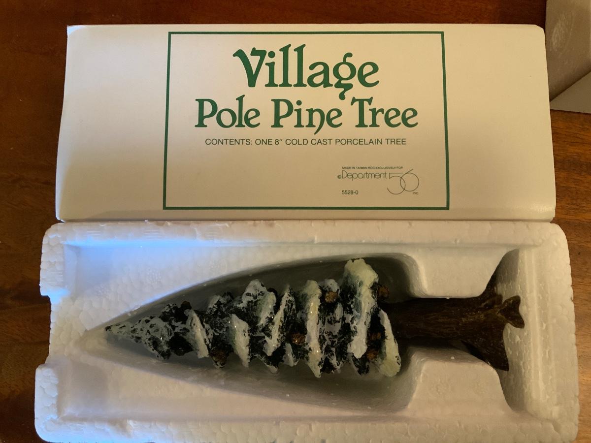 Lot of Dept 56 Heritage Village Collection and a Village Pole Pine Tree