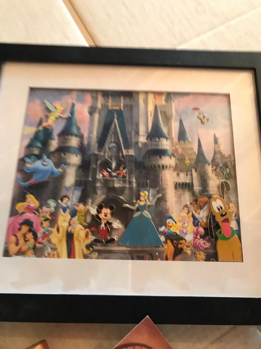 The ultimate collection! Stamps, Hat, watch, and Picture. There is also a 2001 Disney catalog (where I learned a whole lot about what was at this sale!) The picture of the Castle has pins, this picture new cost $125 to purchase!