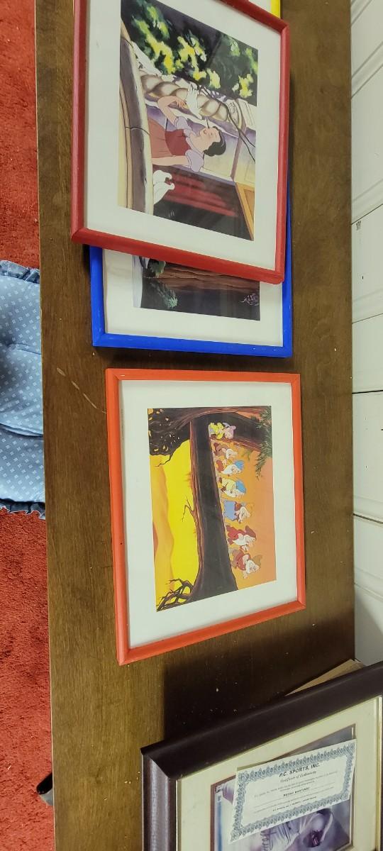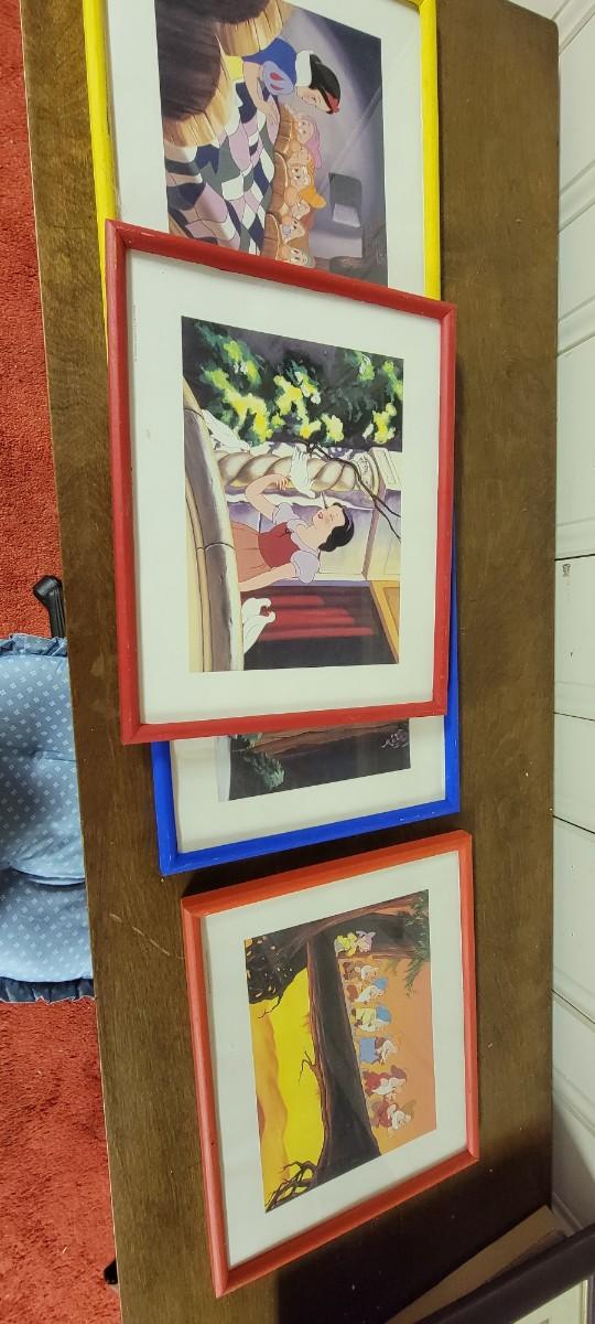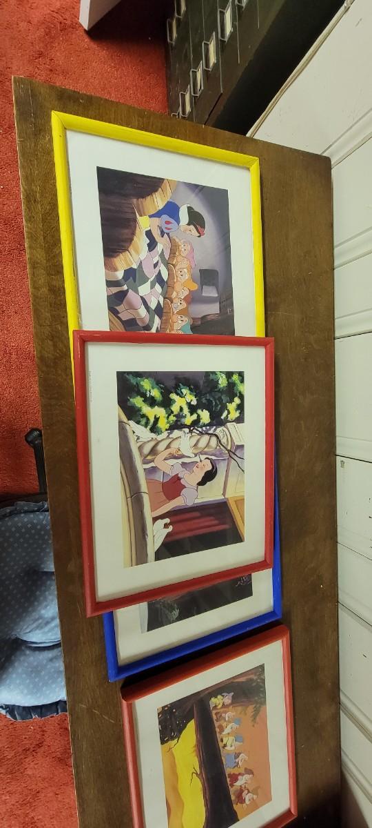 This is a lot of four prints of Disney Characters including Snow White and others. These are gorgeous pieces and would look good in any home!