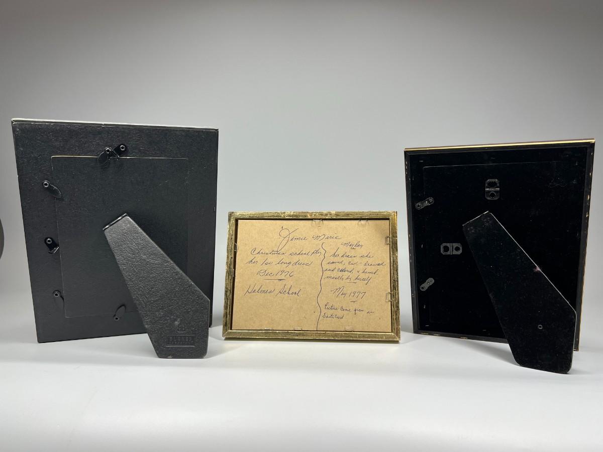 Lot of Displayable & Hanging Photo Picture Frames Burnes of Boston & More, there is no significant damage to the photo frames and is in good useable condition. The middle frame does not have a hanging hook. Check pictures for more details and for sizing.