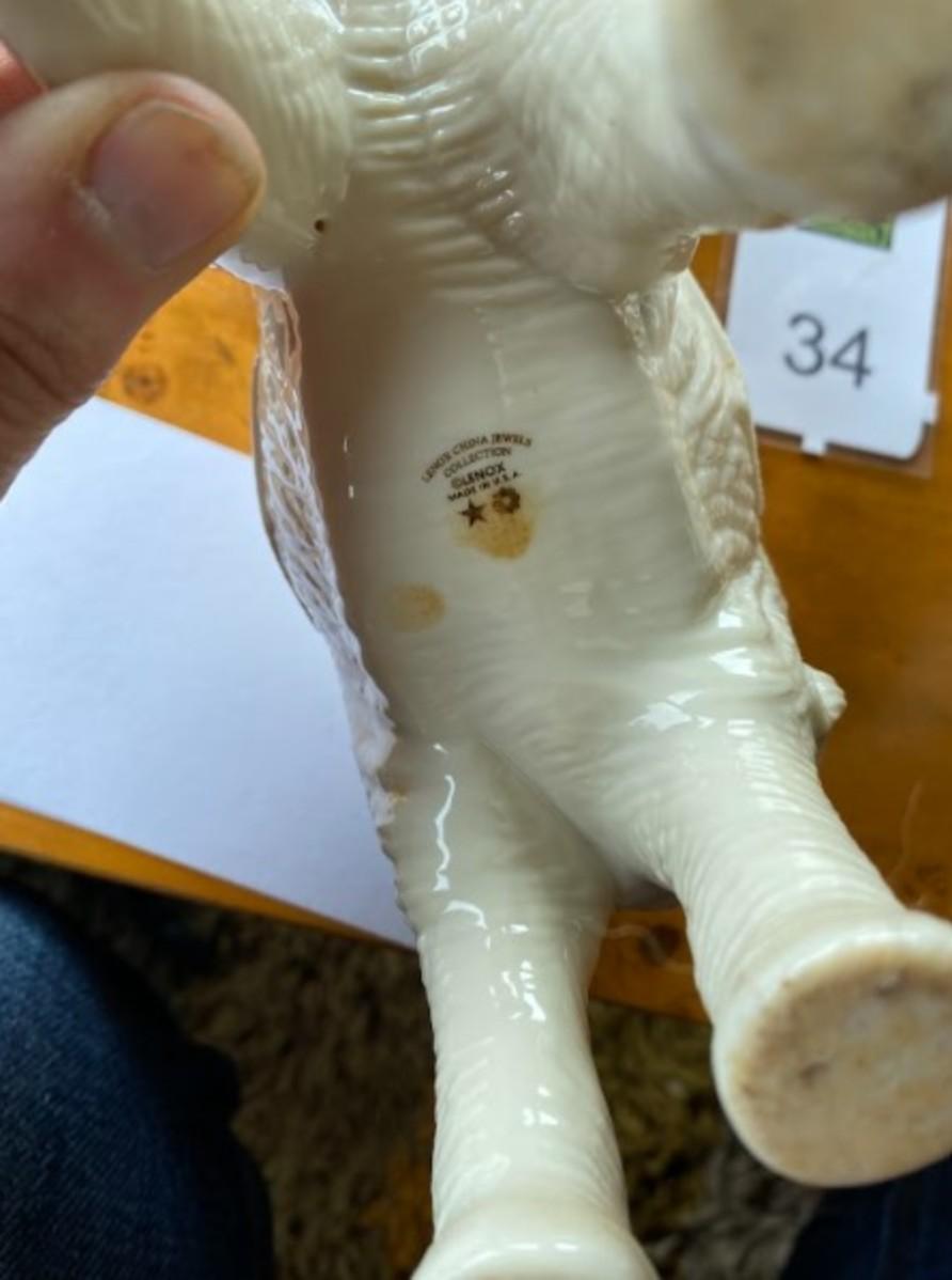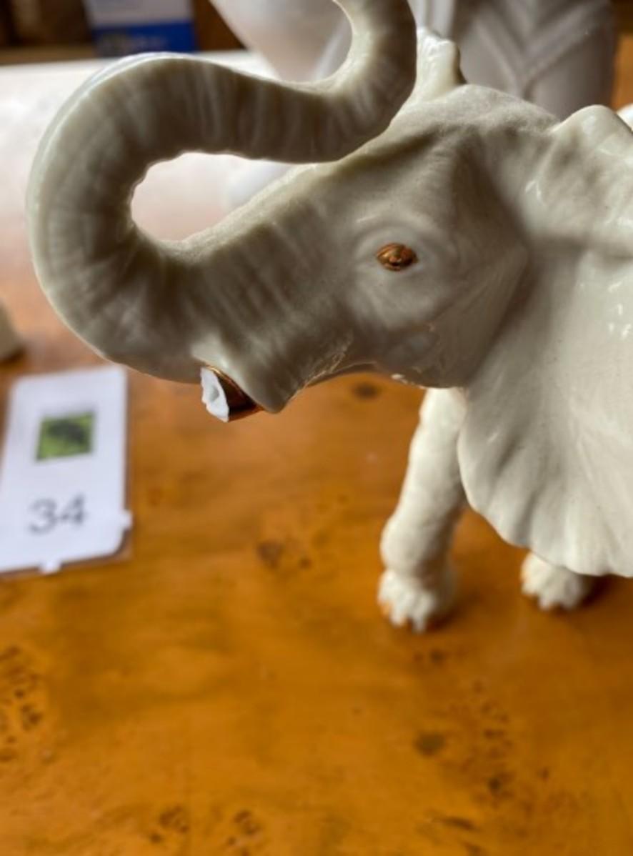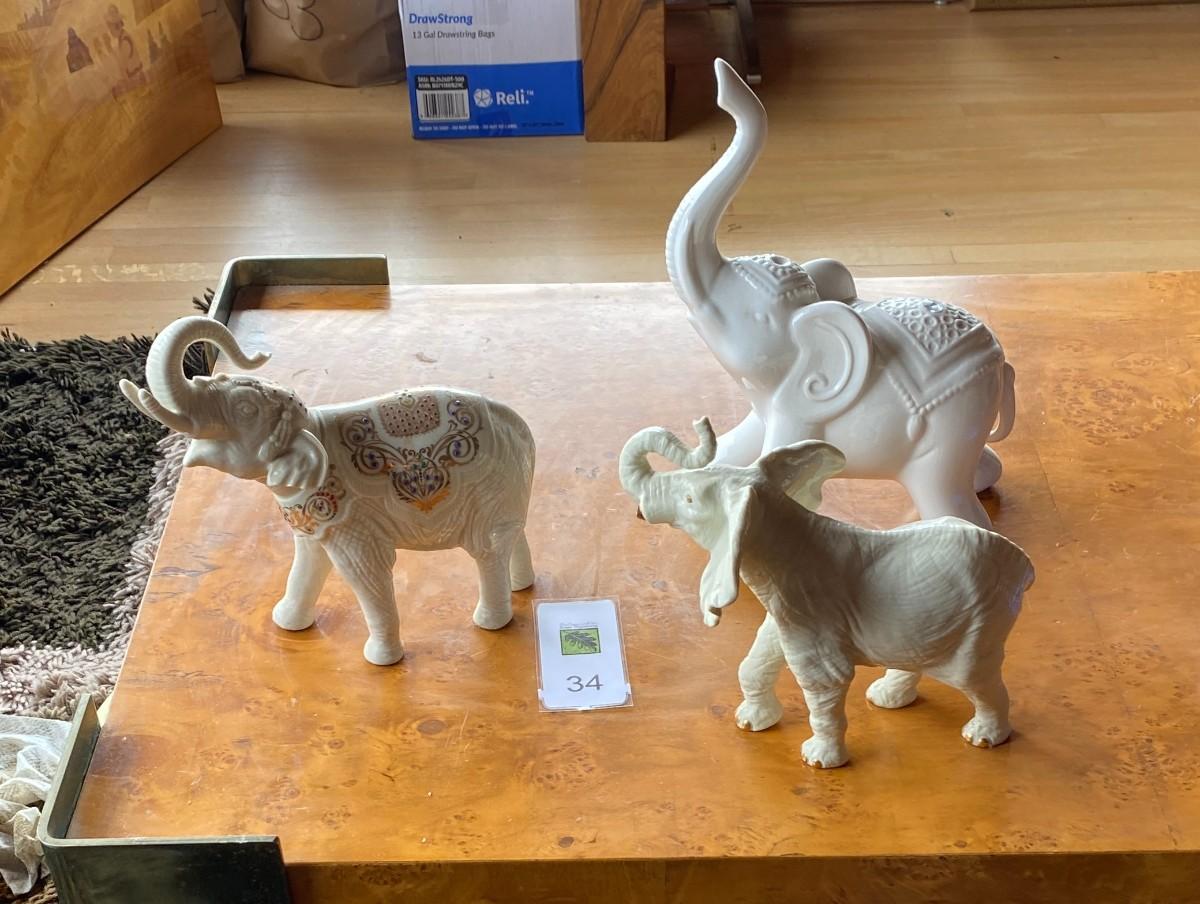 3 ceramic elephants - 2 marked Lenox. Tusks missing from one. Largest is 12" tall smallest is 4"