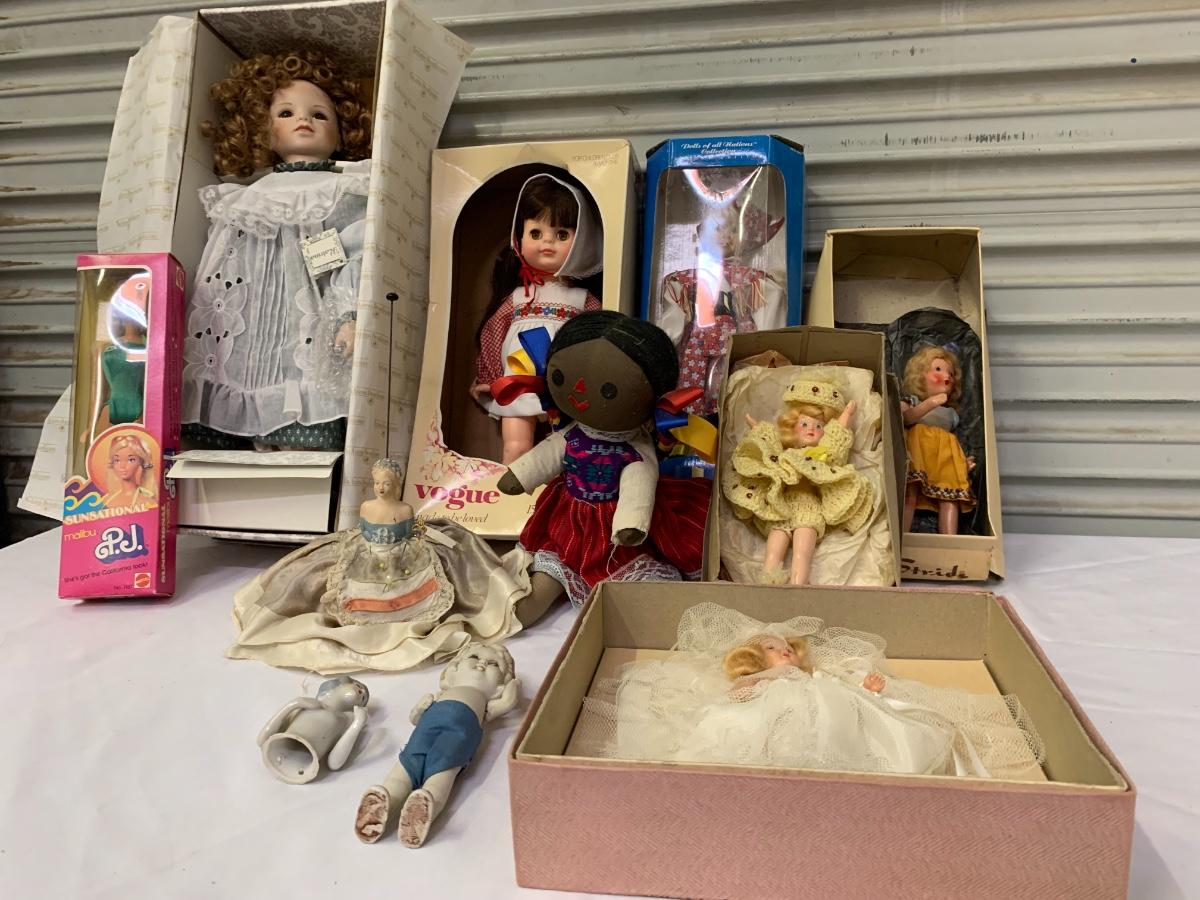 Antique and Vintage Dolls including Rare Sensational Malibu PJ Barbie (box never opened)