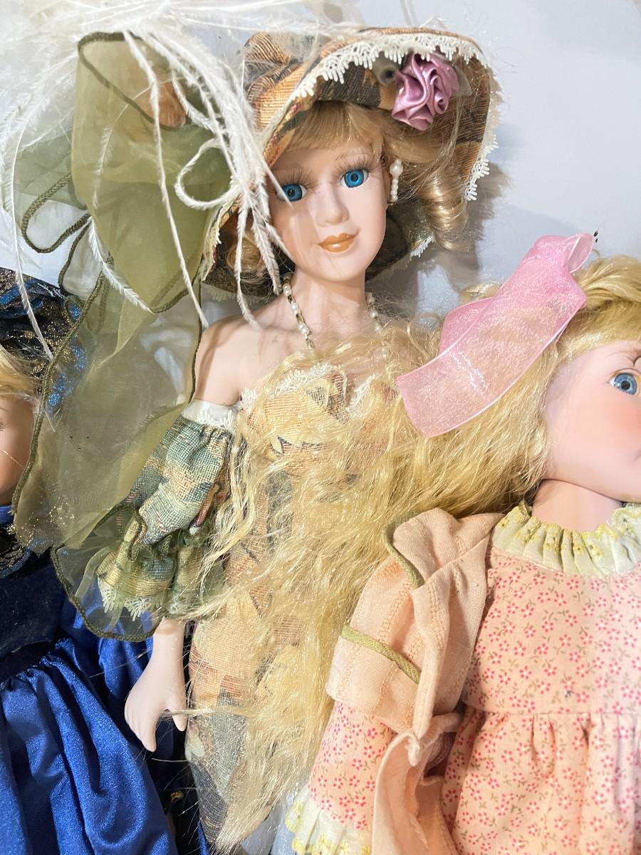 Lot of dolls, shelf 3. Includes everything shown.