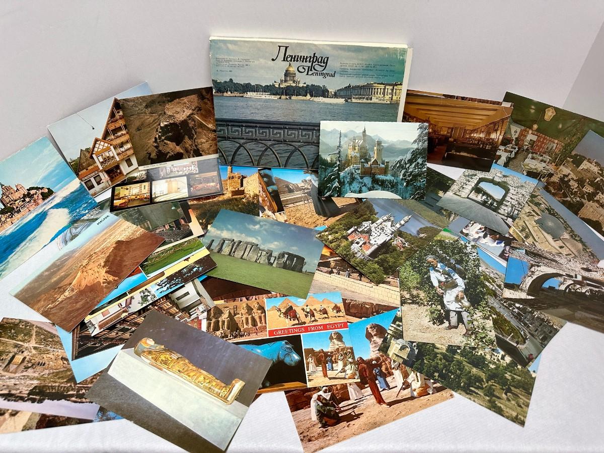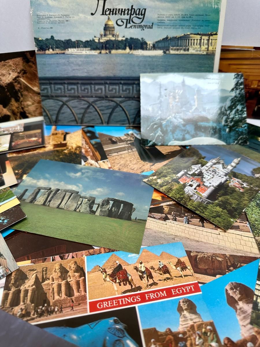 Several dozen unused postcards from military travels to Germany, Egypt, Jerusalem and Soviet Russia. Most date from the early 1970's to mid 1980's. So much fun for a postcard picker to go through.