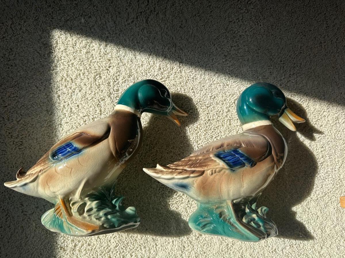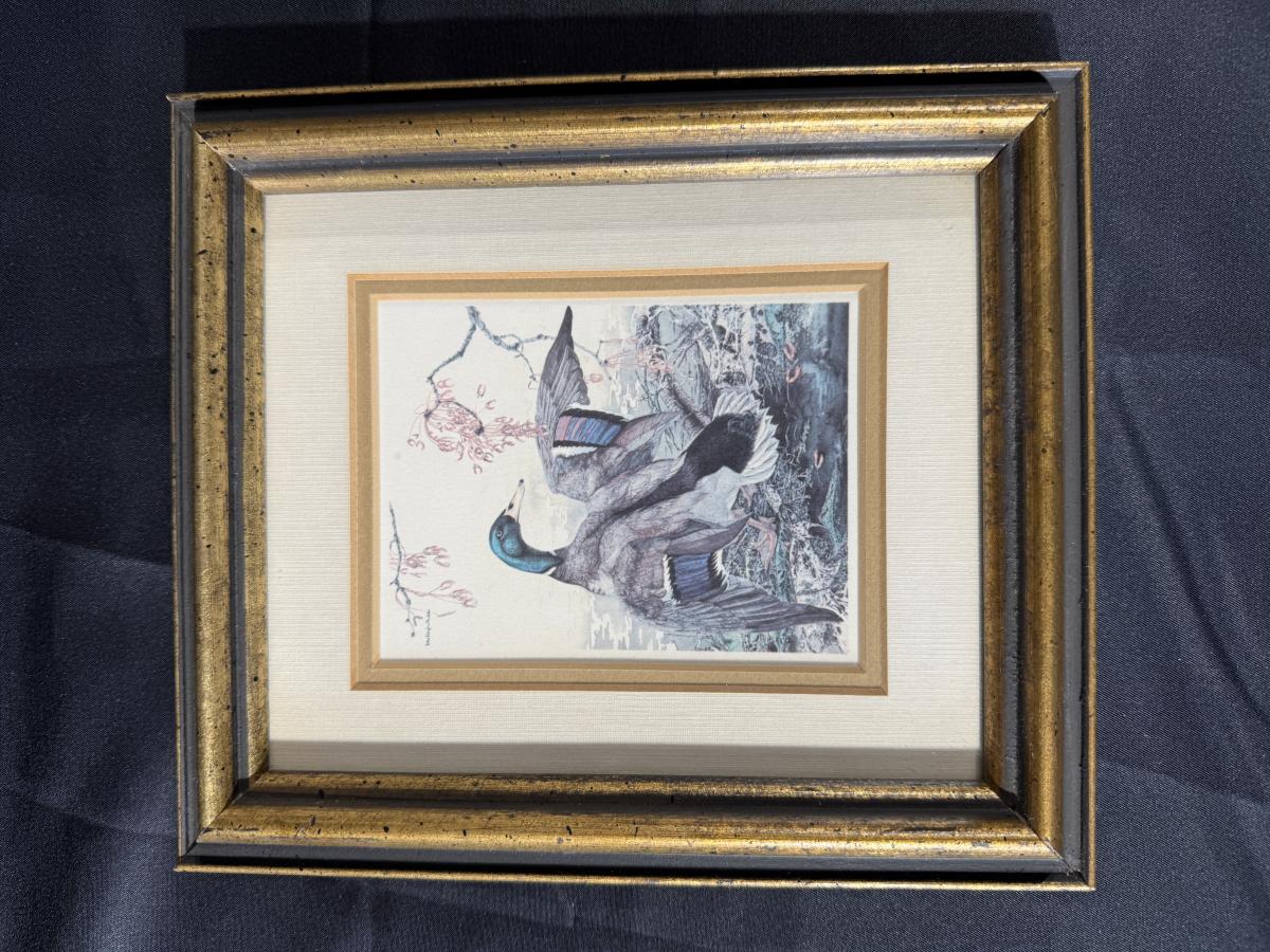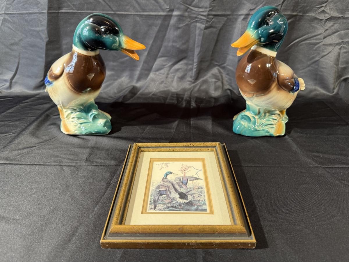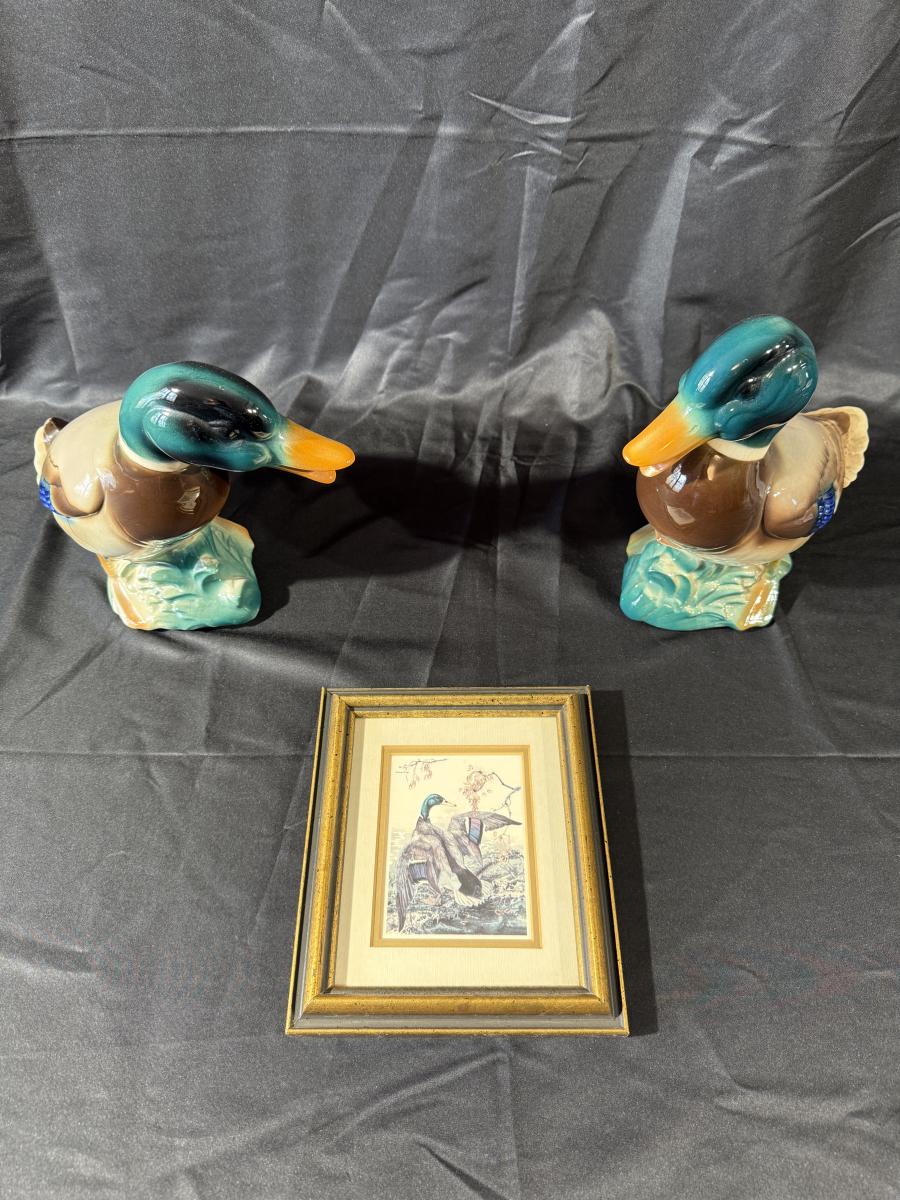 Lot of Duck Figurines and a Frames Duck Print