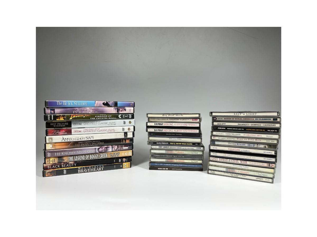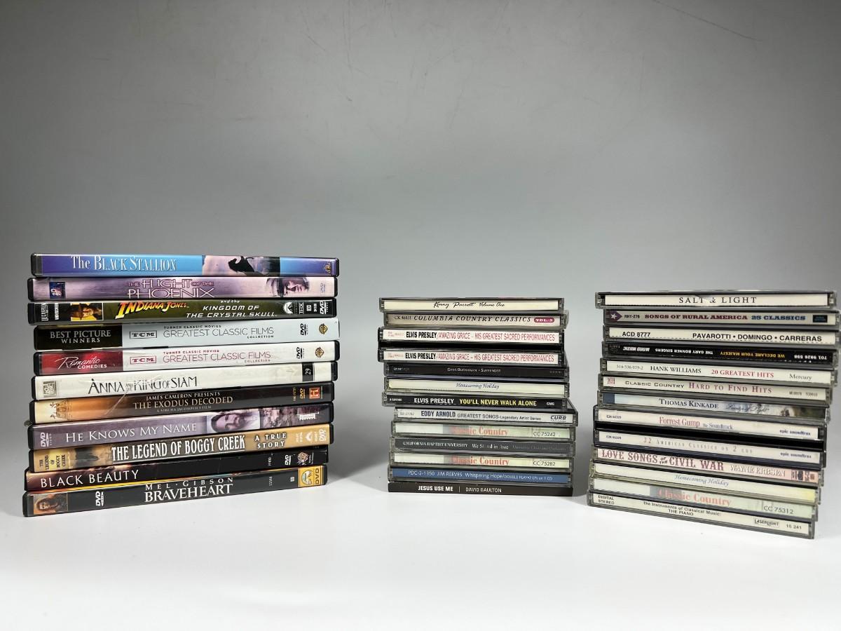 Lot of DVD's & CD's Indiana Jones, Elvis, Braveheart, Hank Williams & More