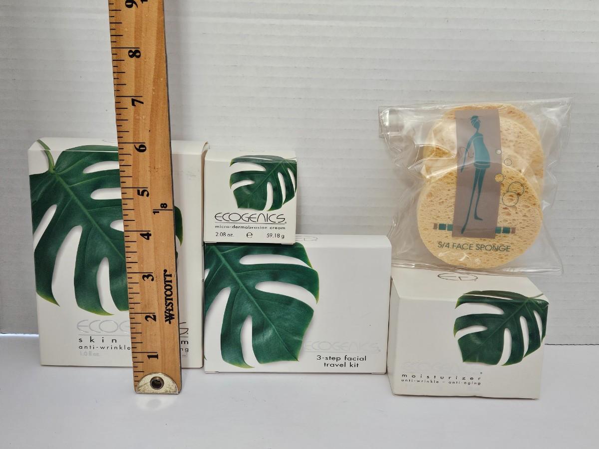 This listing is for a lot of brand-new, boxed Ecogenics skincare products and a sealed package of face sponges. Ecogenics is an organic skincare line known for using natural botanical ingredients and fruit enzymes for anti-aging and skin renewal. This lot provides a great opportunity to try several key products from the line.