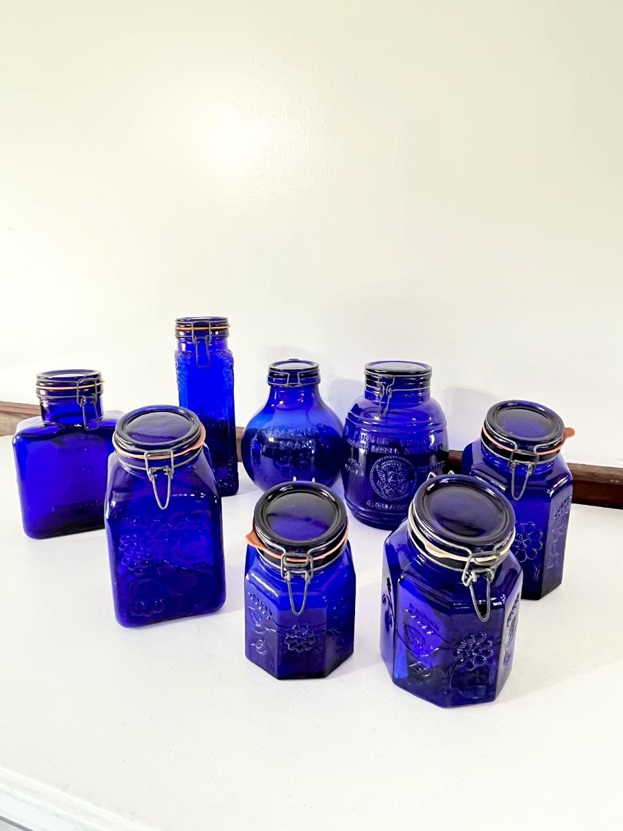 Lot Of Eight (8) ~ Assorted Vtg. Cobalt Blue Canisters