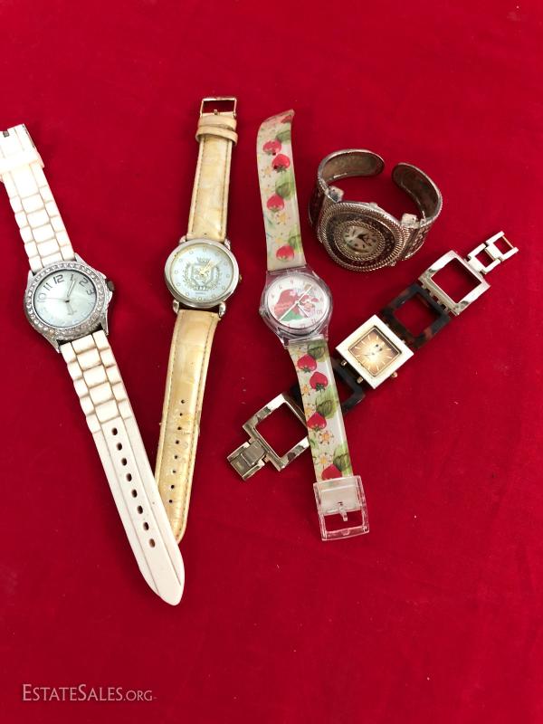 Lot of 5 fashion watches. Not tested sold as-is.