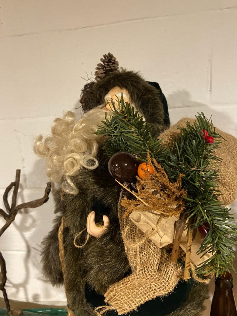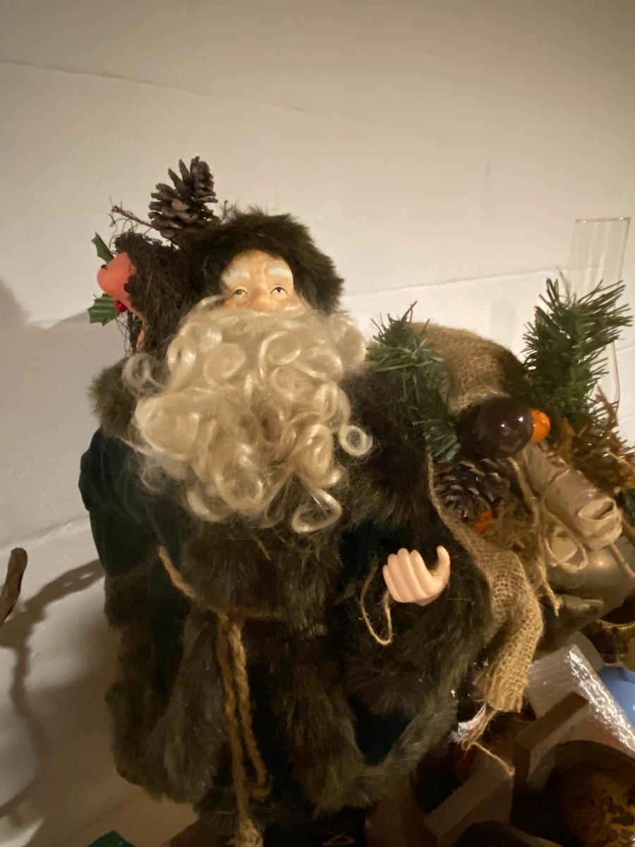 As shown, all items are in good condition. Includes two candle holders, one unused candle, and a jolly Father Christmas figurine