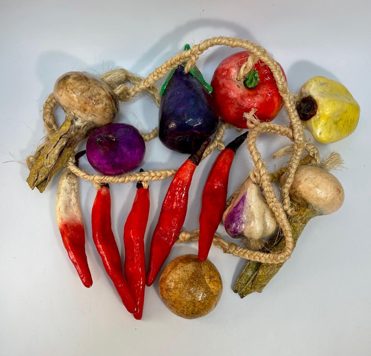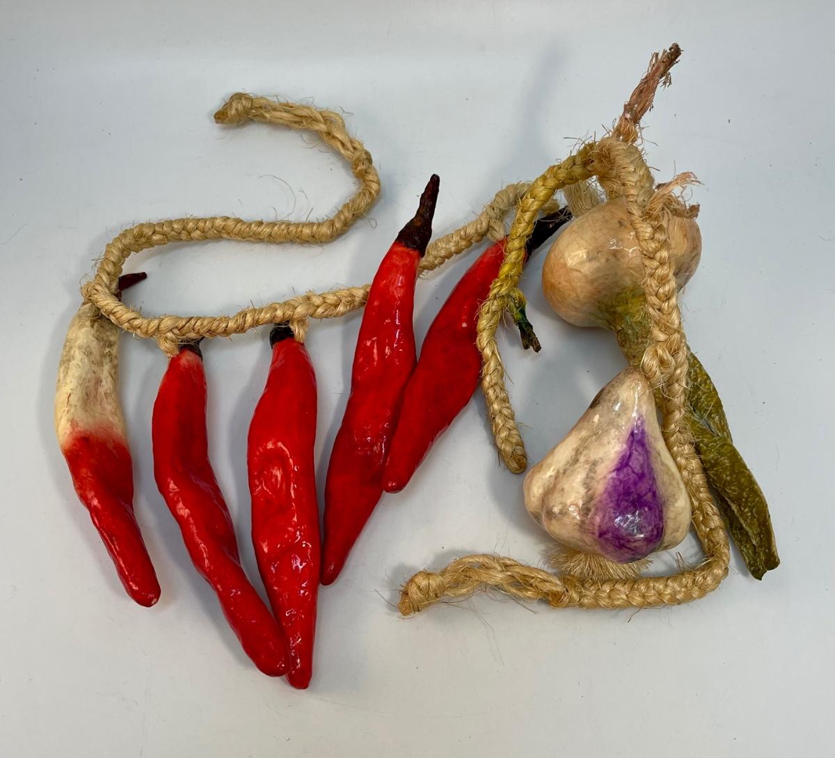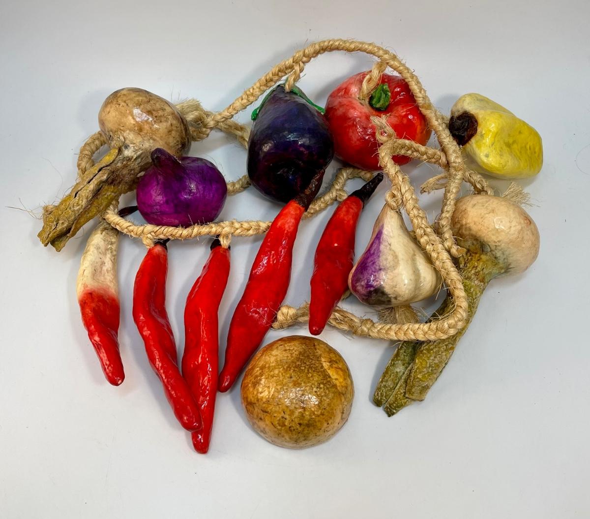 Lot of Faux Vegetables and Chiles Hung on Twine Kitchen Decor