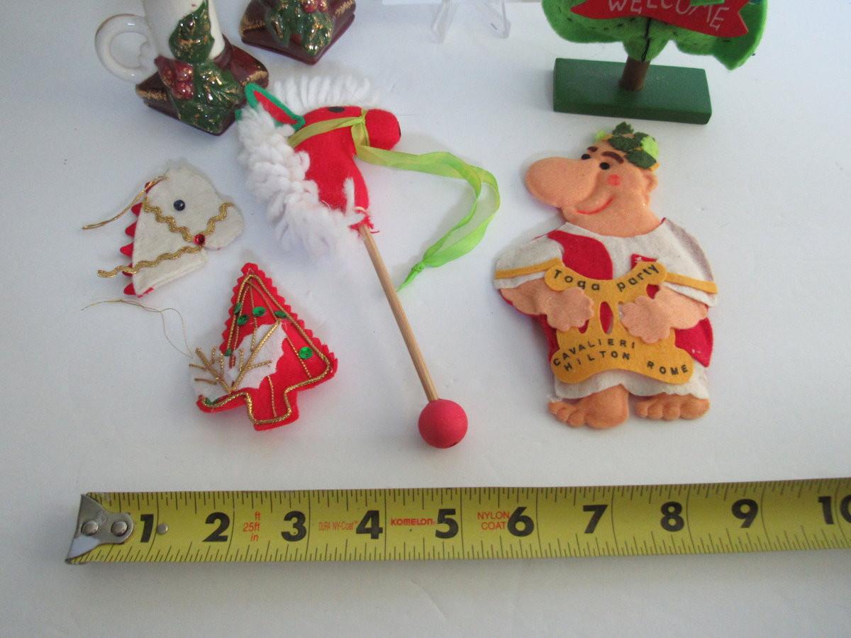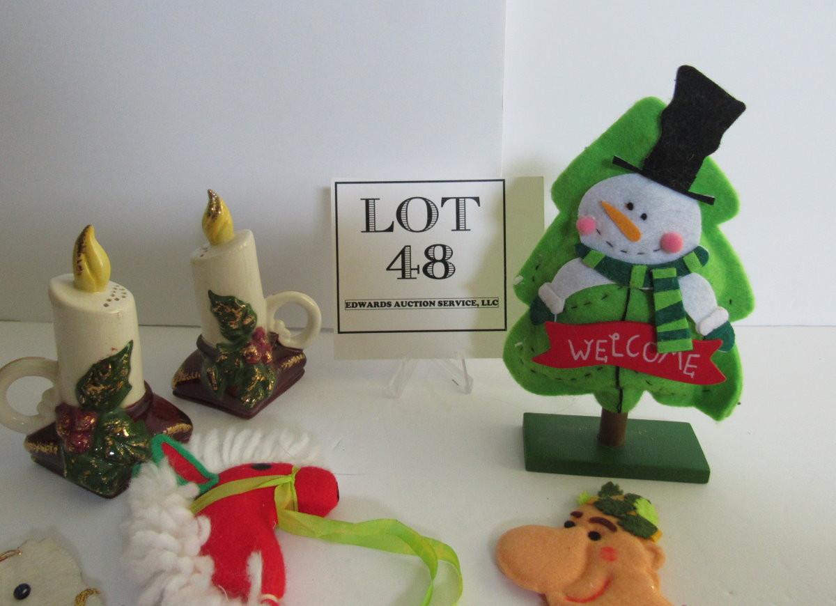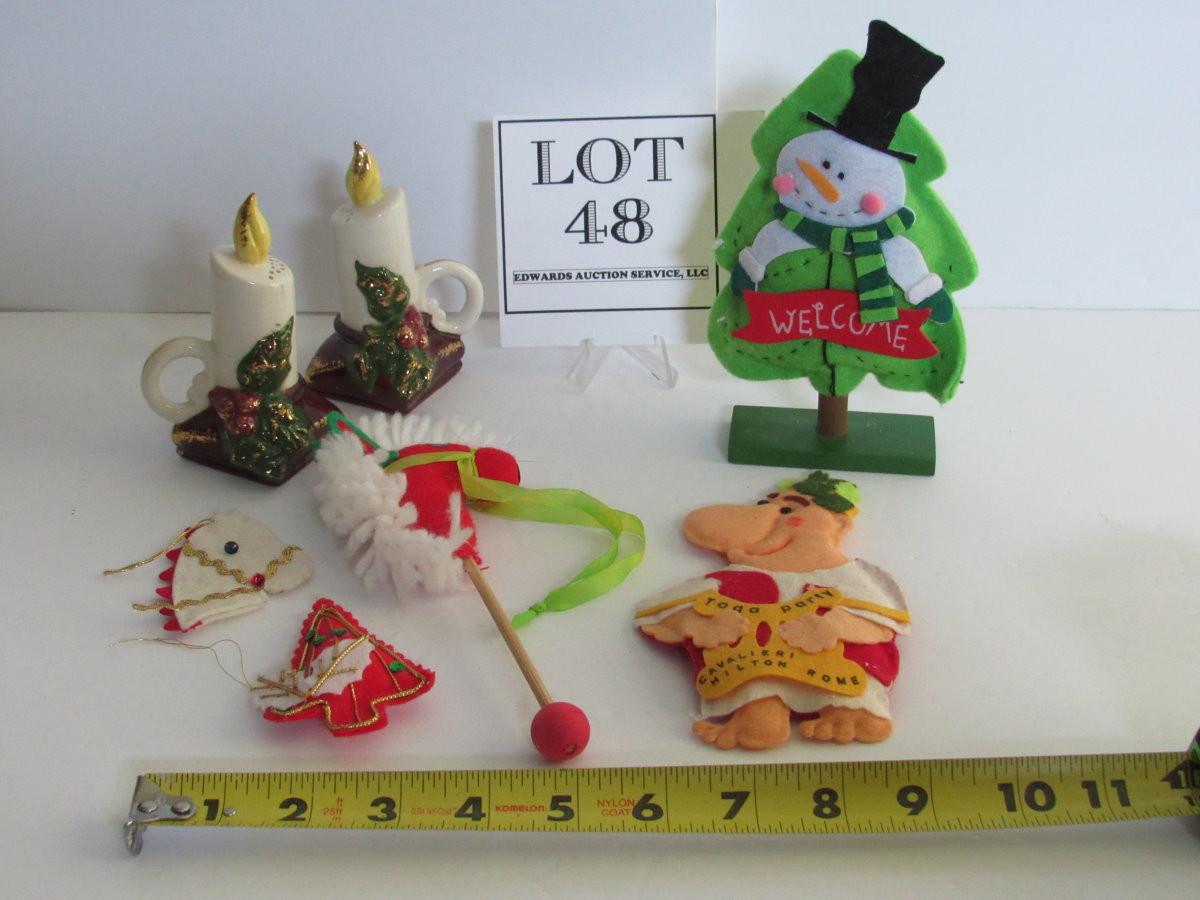 Lot of Felt Christmas Items and Christmas Pottery Salt and Peppers