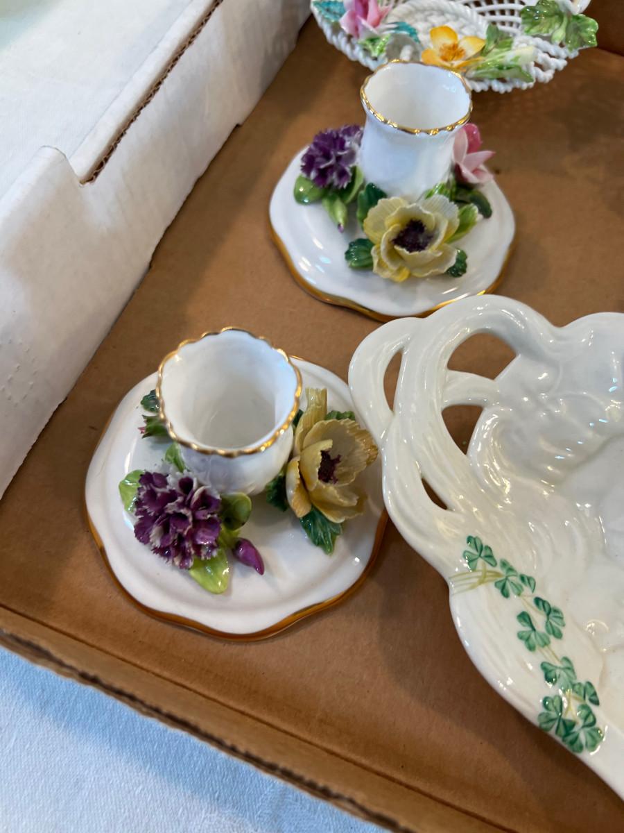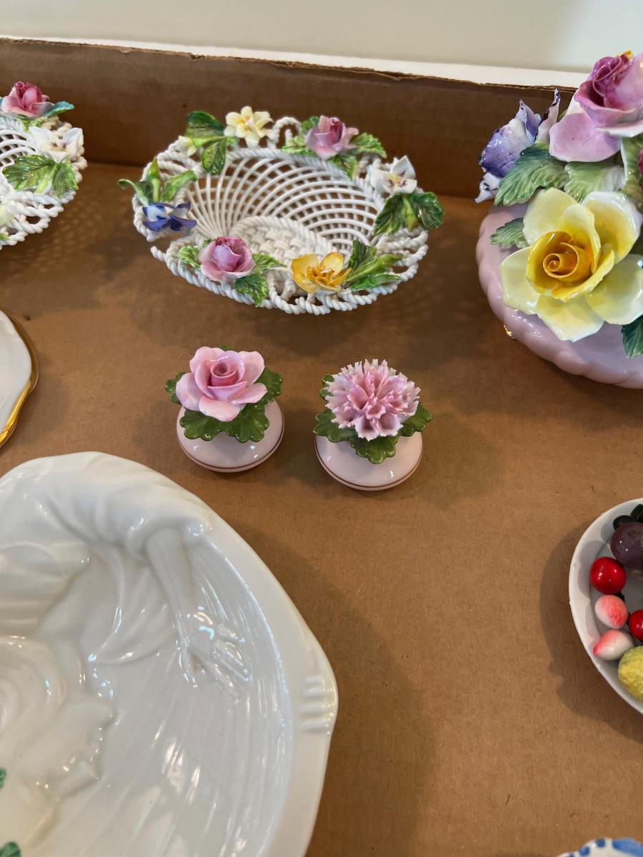 Lot of Fine Floral Motif China Trinkets: Staffordshire and other fine porcelains