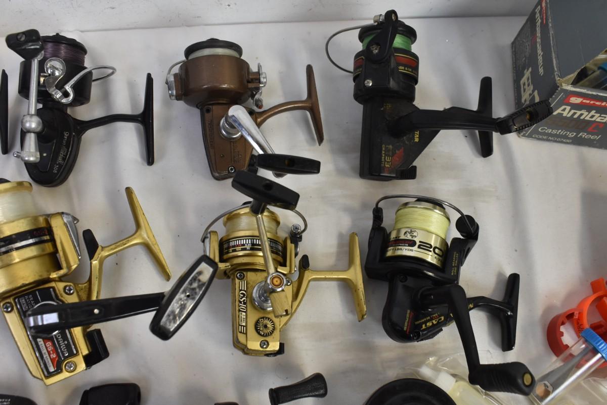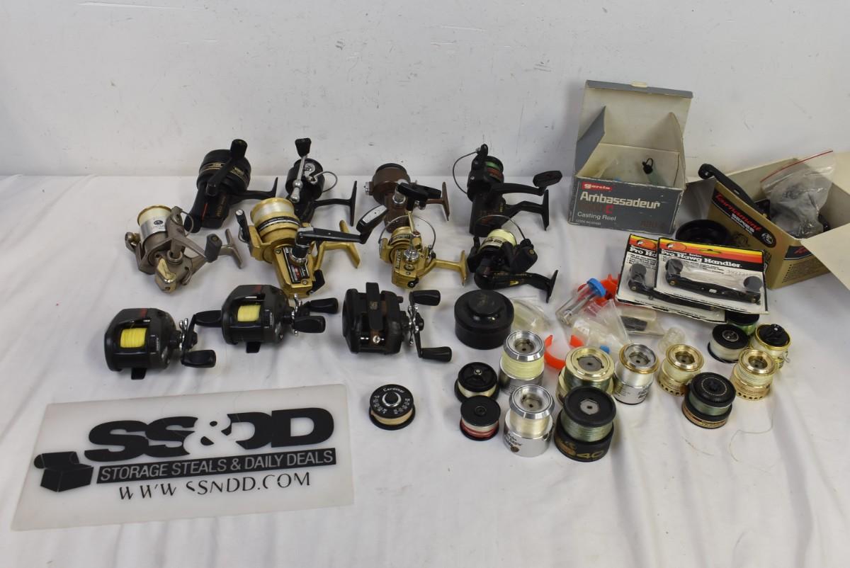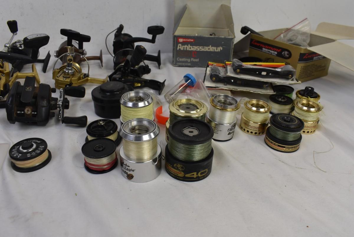 Lot of Fishing Gear, 11 Reels, Spools of Fishing Line
