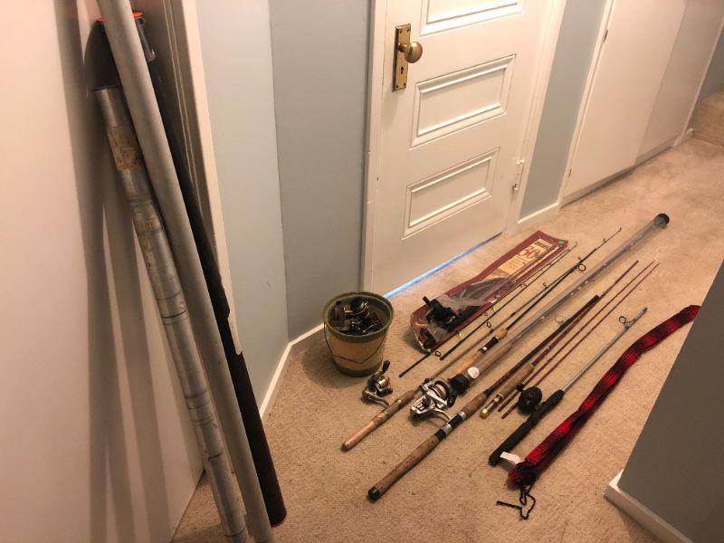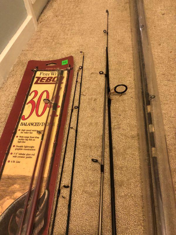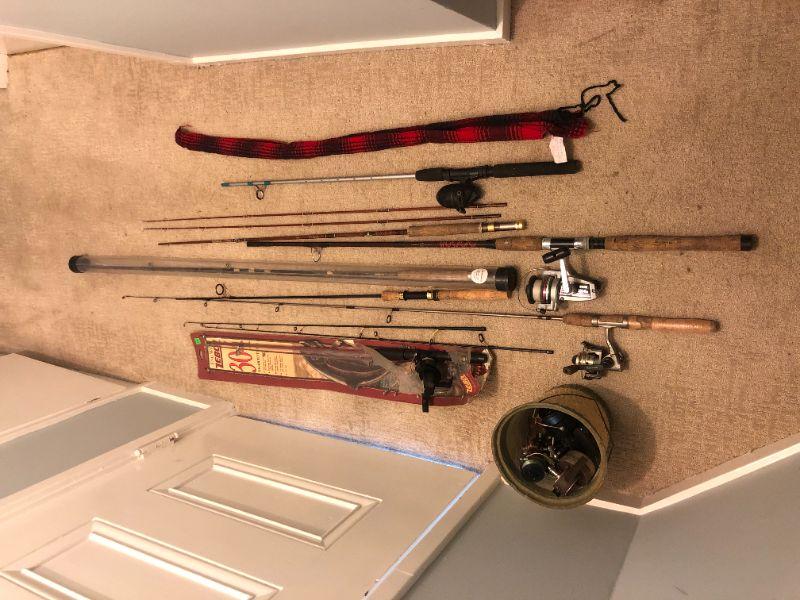 Great lot of fishing poles and gear! Includes brands such as Ryobi, Quantum QR, Zebco, Sage, and more! Includes the storage containers for the poles.