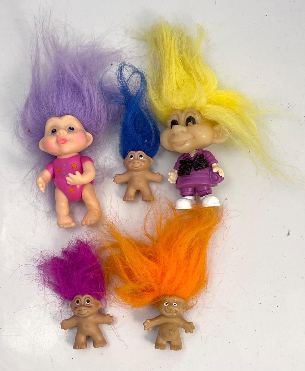 Lot of five Troll Dolls kids toys multicolor, vintage