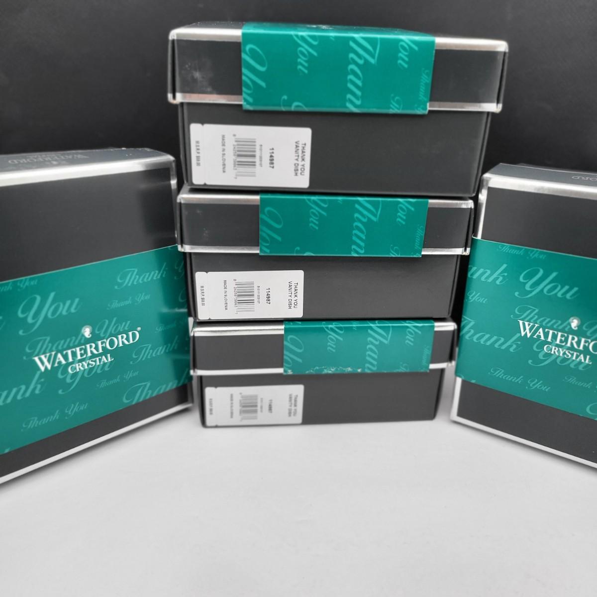 All are new in box, Waterford Crystal. They measures 4" round x 2.5" tall. Each piece retailed for $59.00