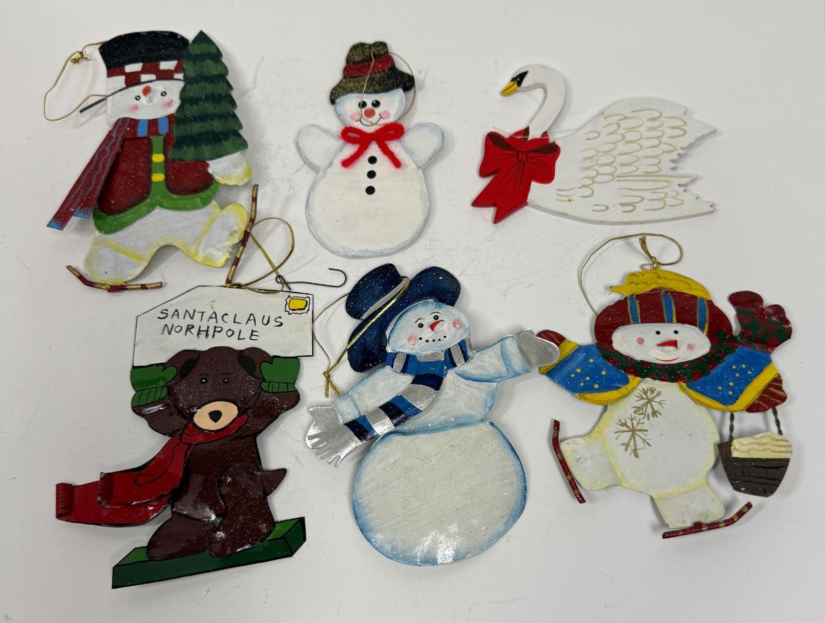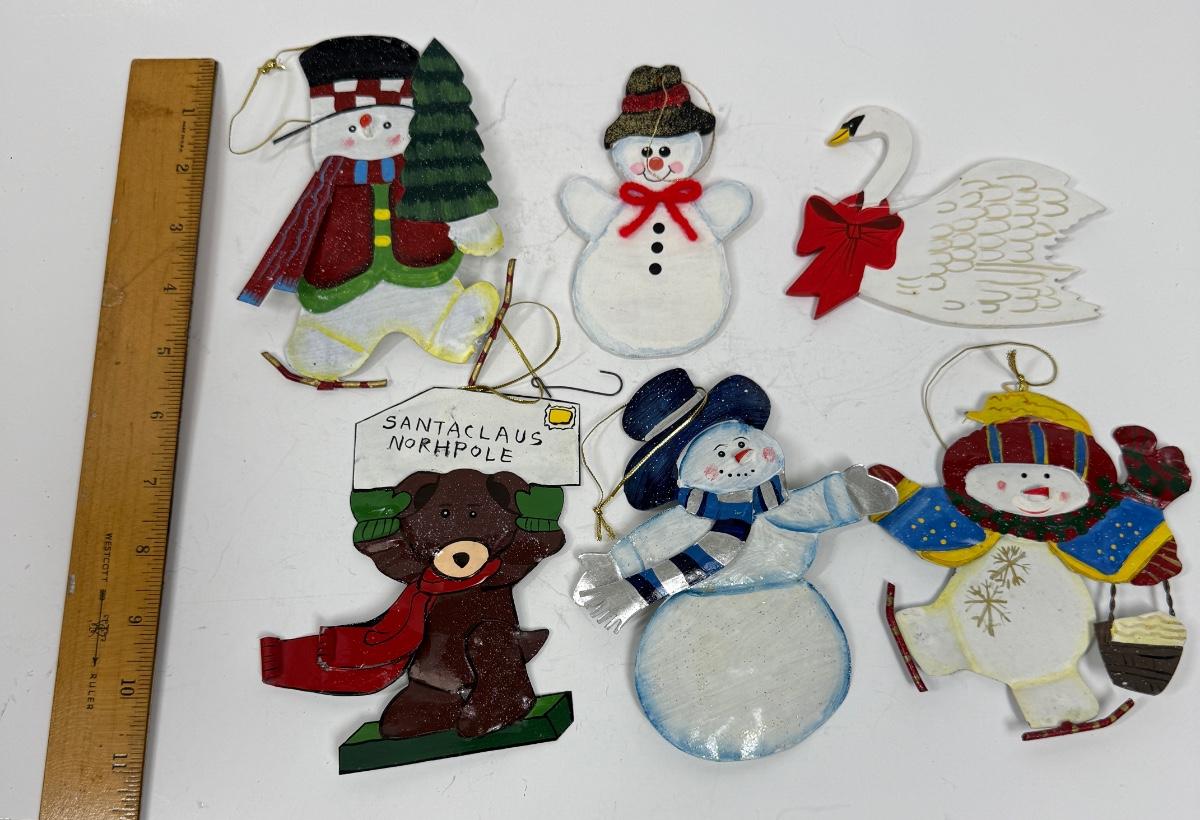 Lot of Flat Christmas Ornaments painted metal and painted wood