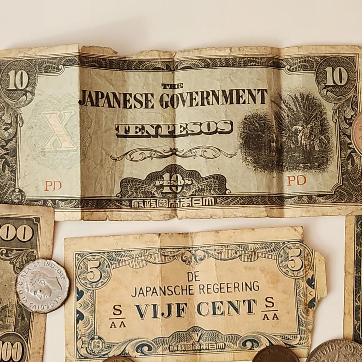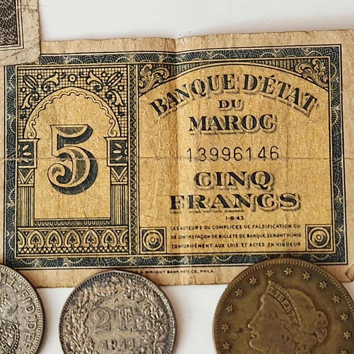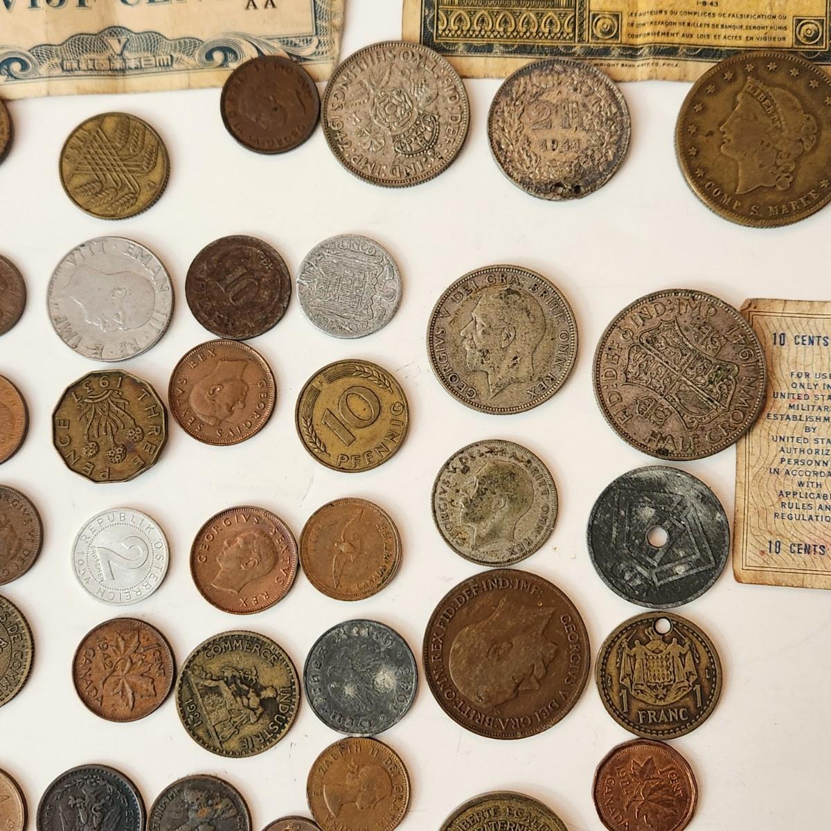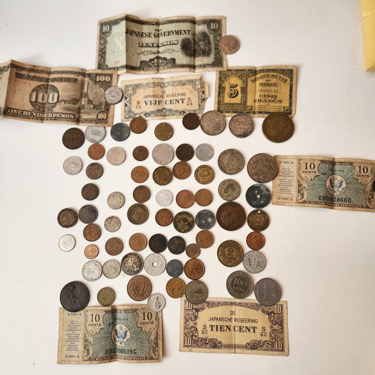 Lot of Foreign Coins & Currency WWII some late 1800's & early 1900's