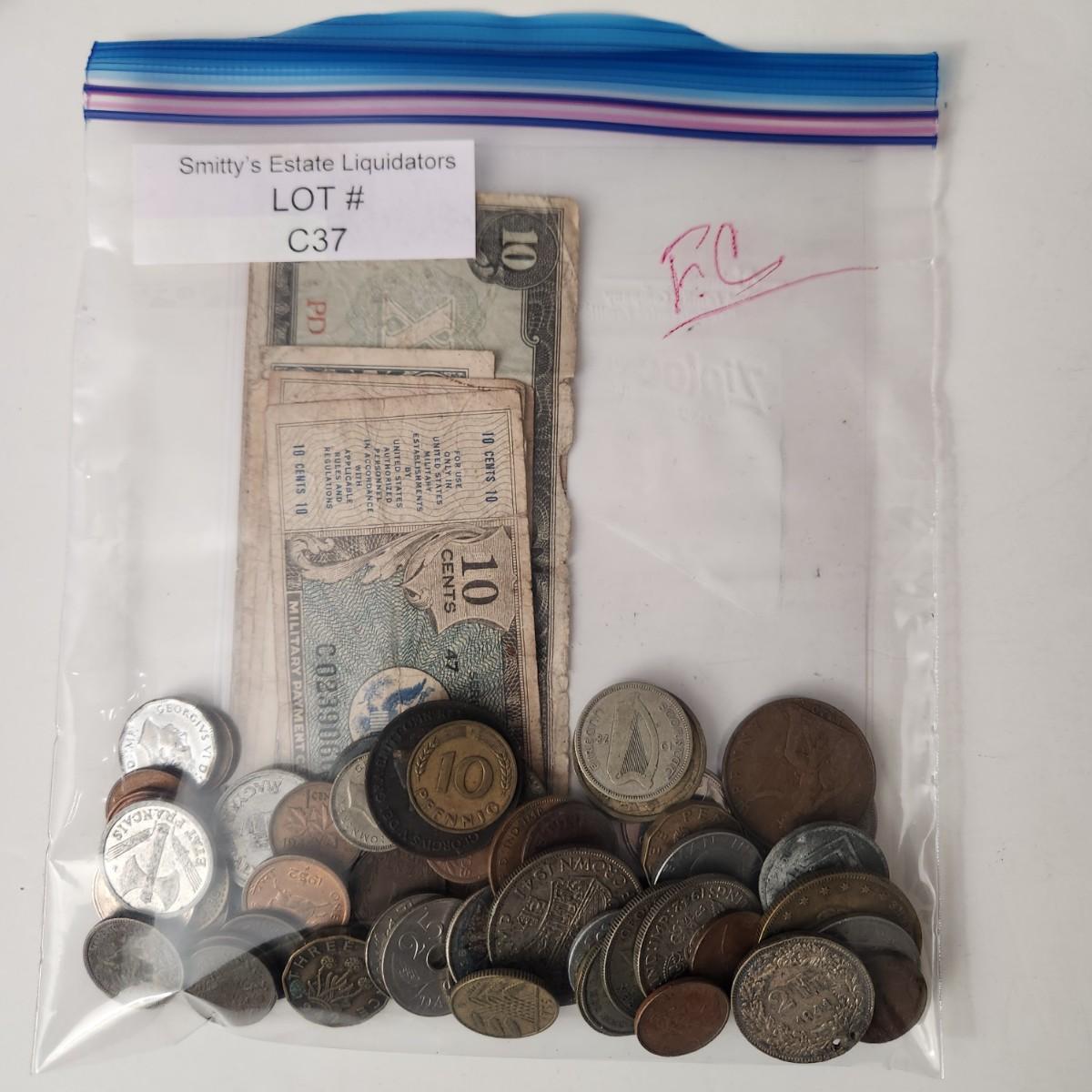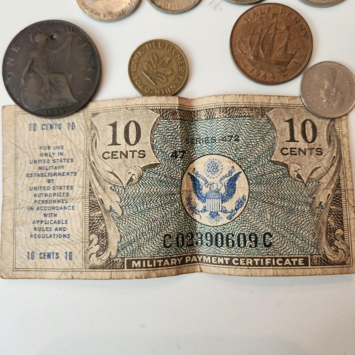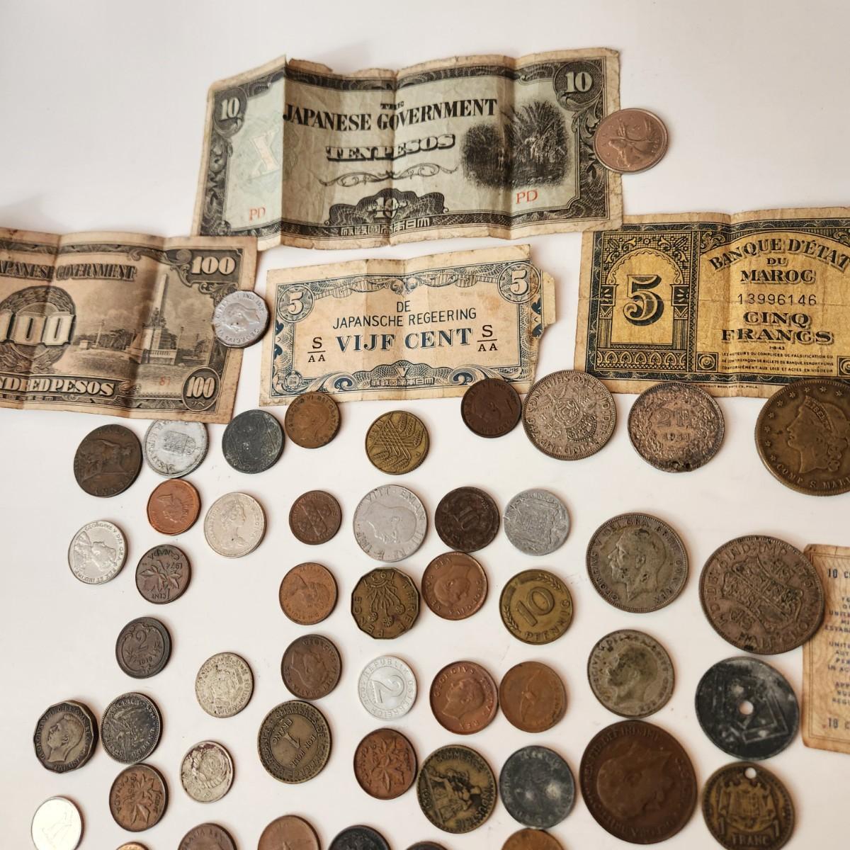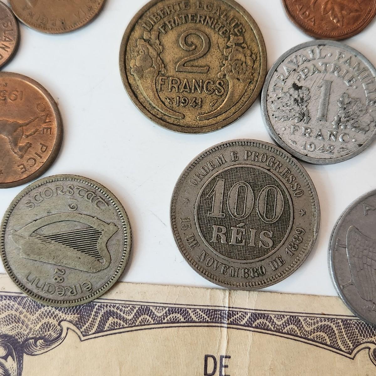 Lot of Foreign Coins & Currency WWII some late 1800's & early 1900's