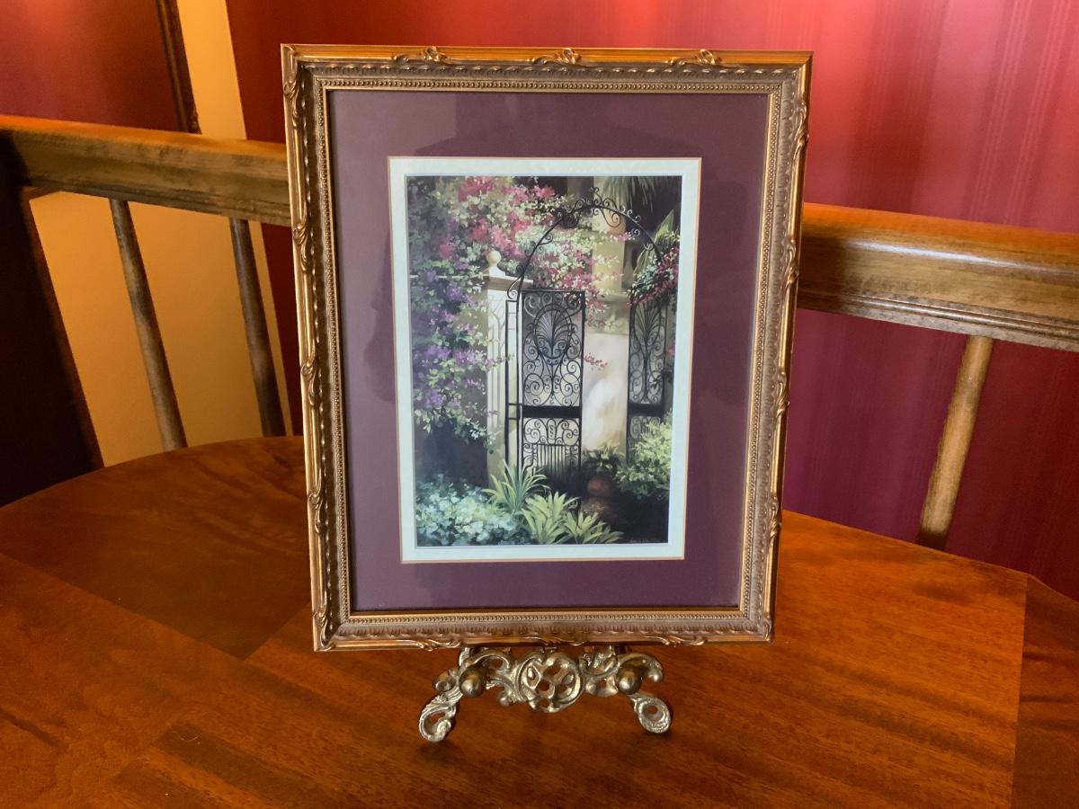 Lot of Framed Garden Print and easel