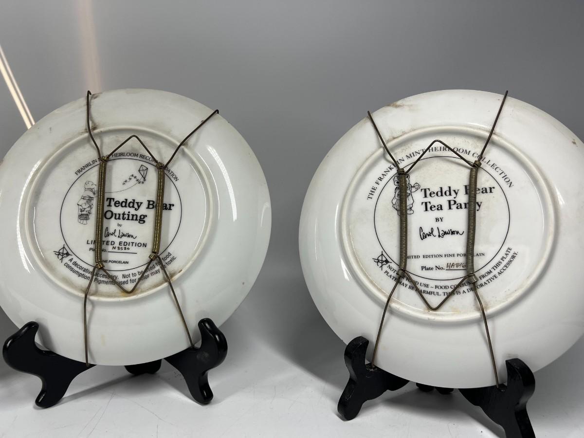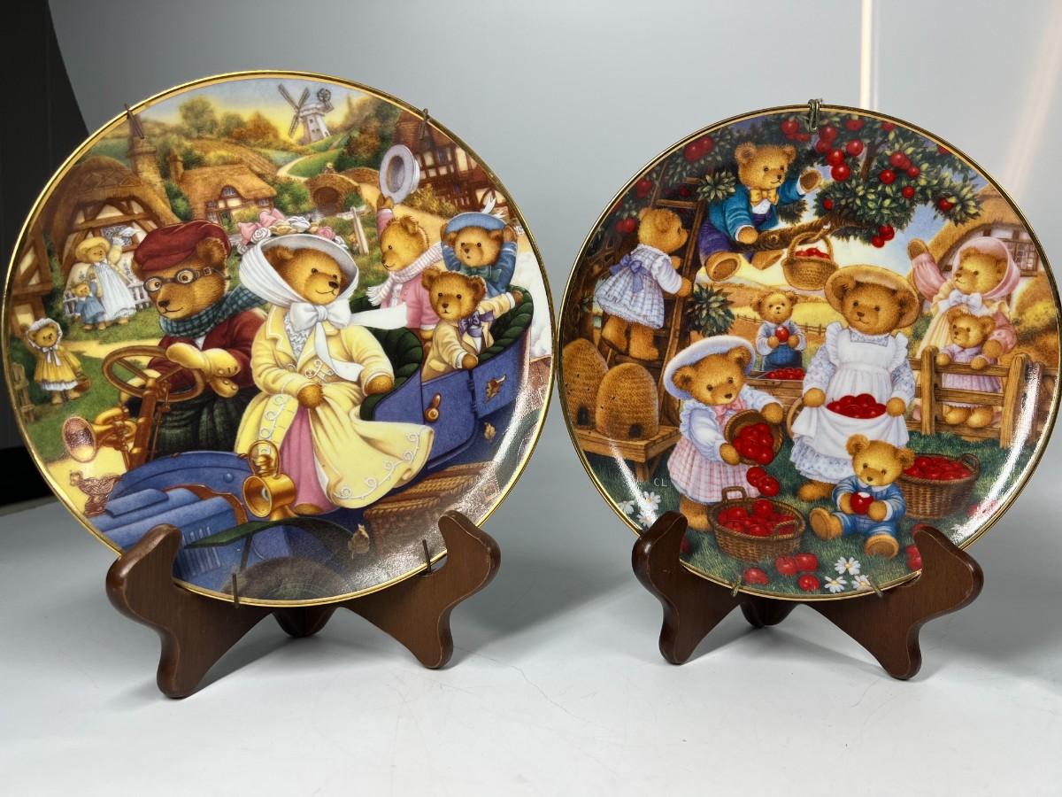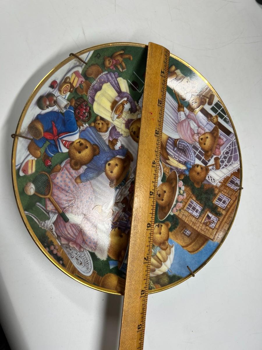 Lot of Franklin Mint Heirloom Collection Limited Edition Cute Teddy Bear Themed Plates Fancy Picnic, Picking Fruit & More