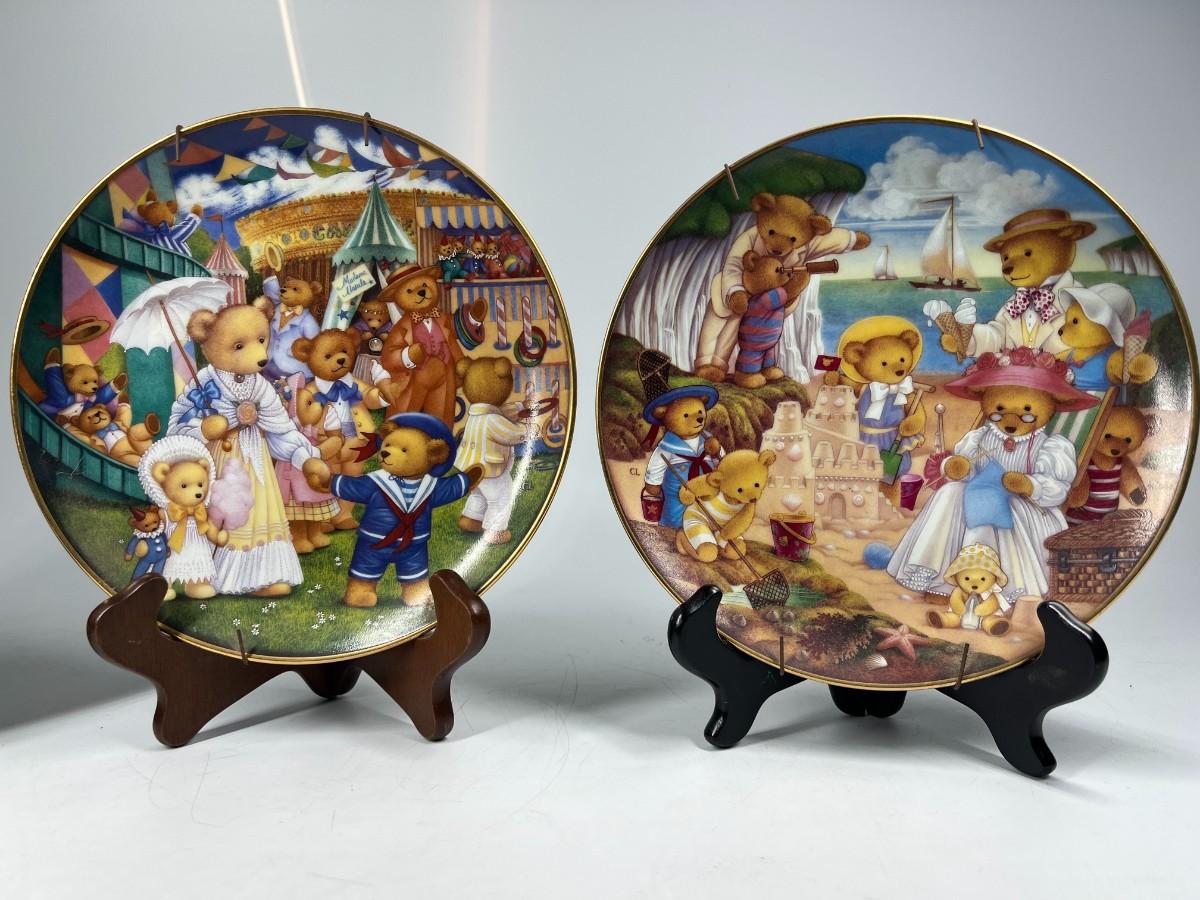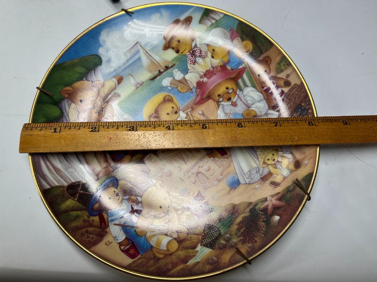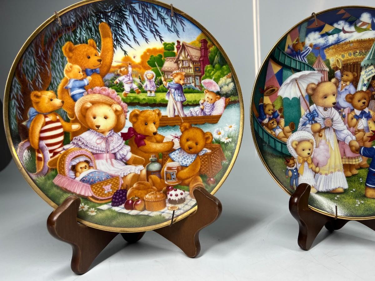 Lot of Franklin Mint Heirloom Collection Limited Edition Cute Teddy Bear Themed Plates Beach Party, Day at the Fair & More