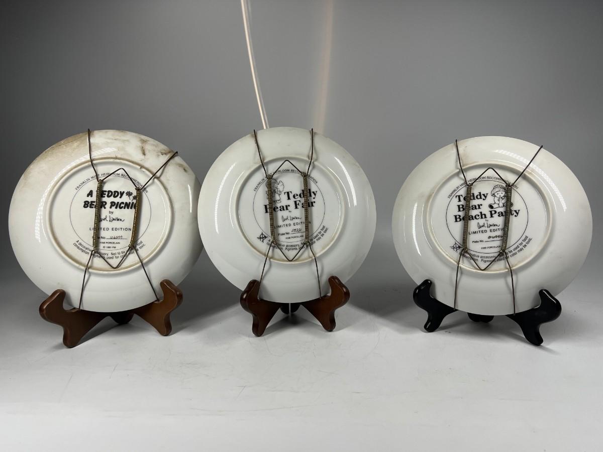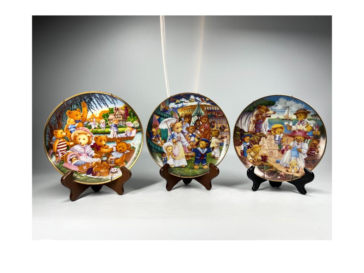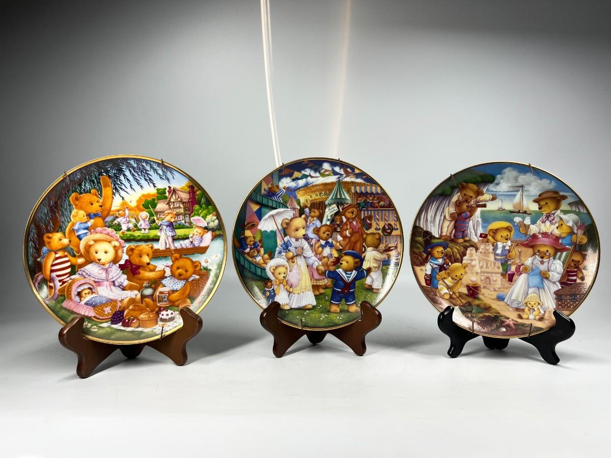 Lot of Franklin Mint Heirloom Collection Limited Edition Cute Teddy Bear Themed Plates Beach Party, Day at the Fair & More