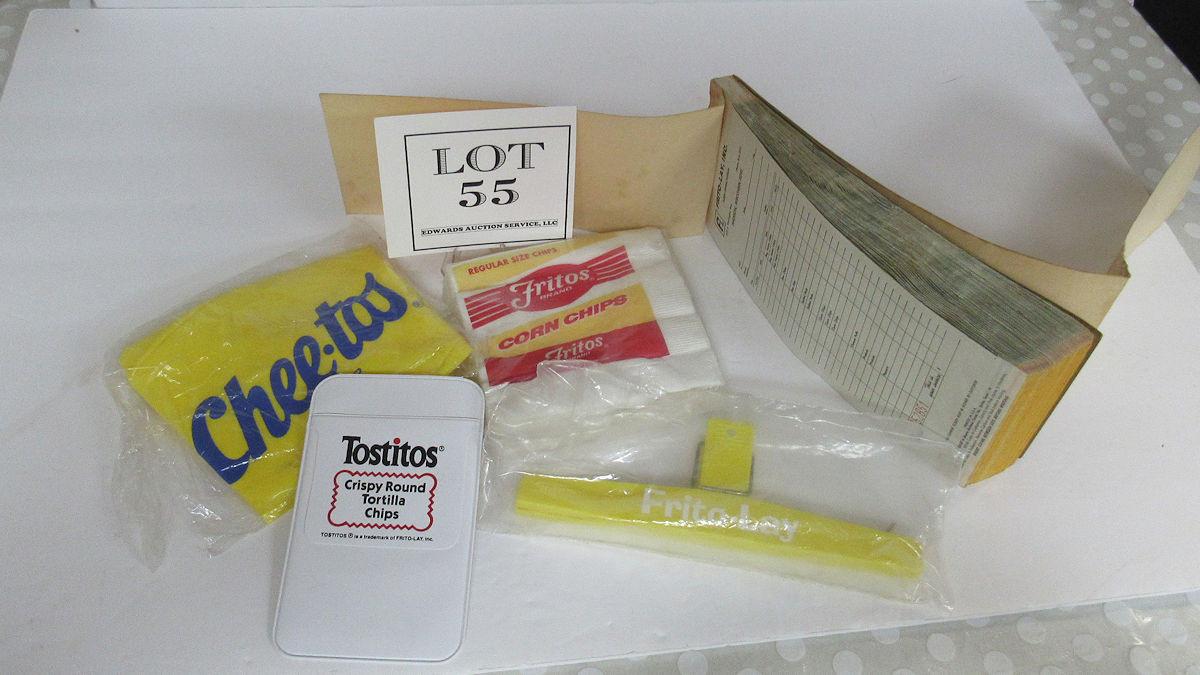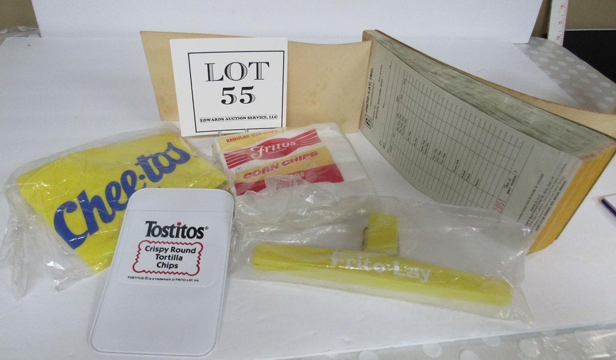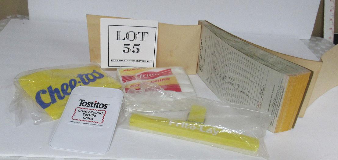 Lot of Frito Lay Advertising Collectibles Pocket Protector, Blow Up Ball, Napkins, Snack Clip, Order Booklet