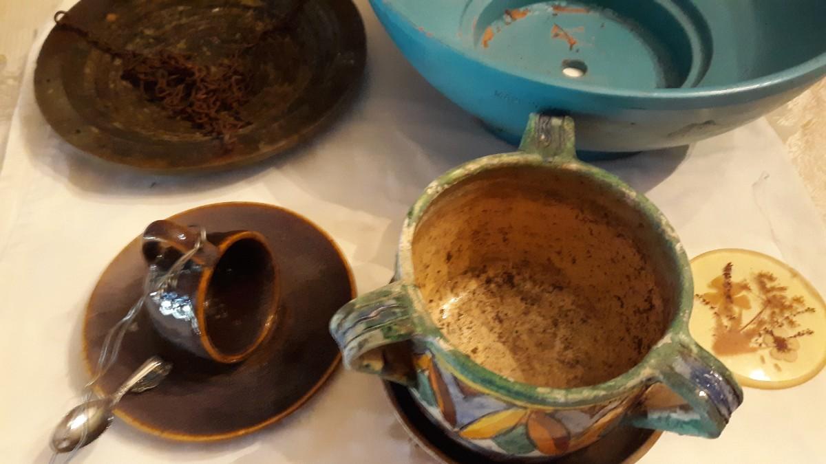 We may use words, like, - retro, antique, vintage, old, primitive, rustic, etc. in pricing and describing items on tags, pictures, and at live auctions.  These are descriptive words and are no guarantee of age. We have no guarantees of any kind. You are buying what you see and the items are "as is" and no returns. We are describing items as what we believe they are, or what our consigner tells us that they are. For example, we may say "brass". This means that we believe to the best of our knowledge that it is "brass", However, if it is not "brass" you are still buying what you see.