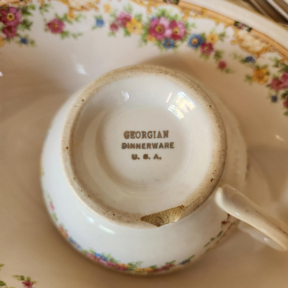 Lot of Geogian Dinnerware U.S.A. Plates Bowls Cups & Saucers, Server ,