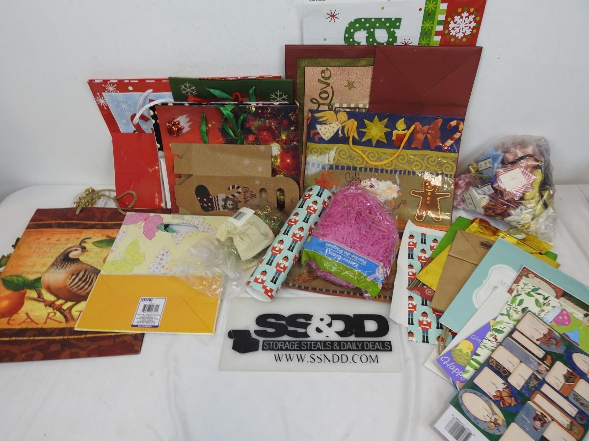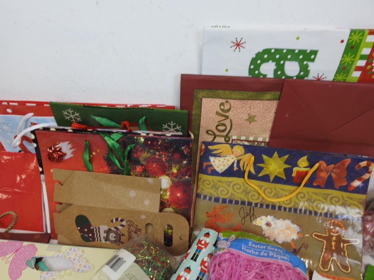 Lot of Gift Bags and Bows, Holiday, Easter Grass, Tags