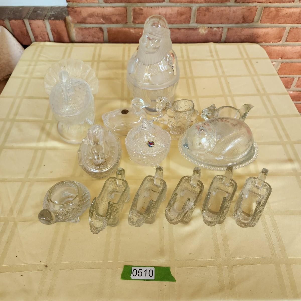 Lot of Glass Bowls cover dishes Turtle Turkey Santa Duck Horse Squirrel Rabbit
