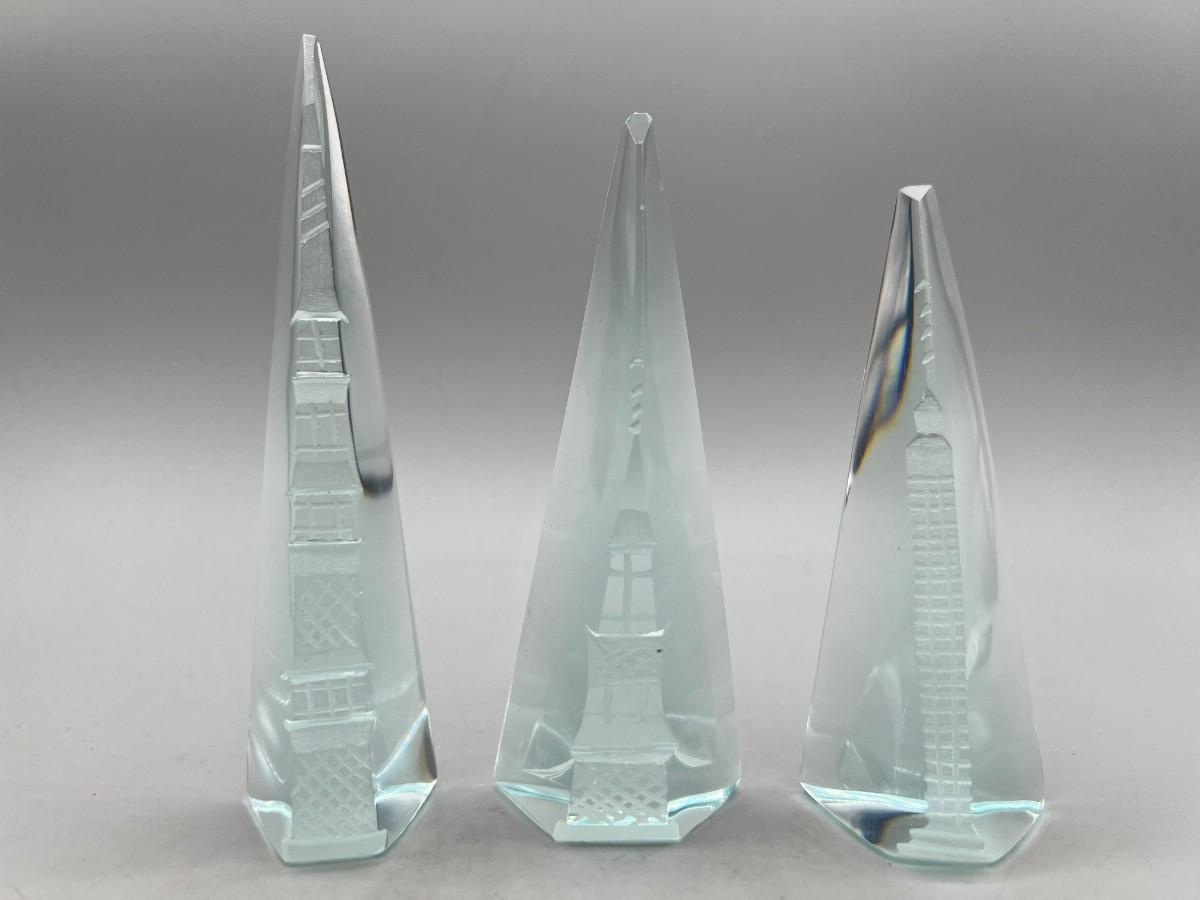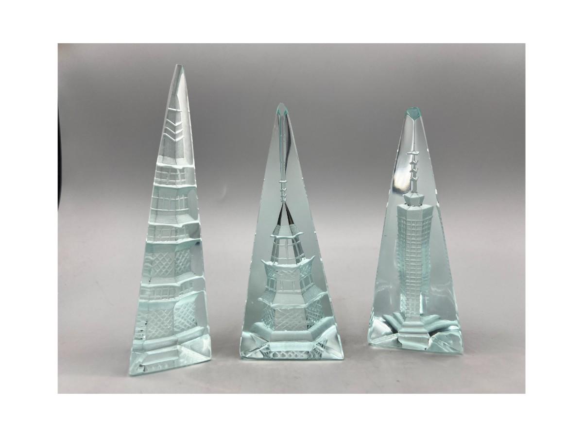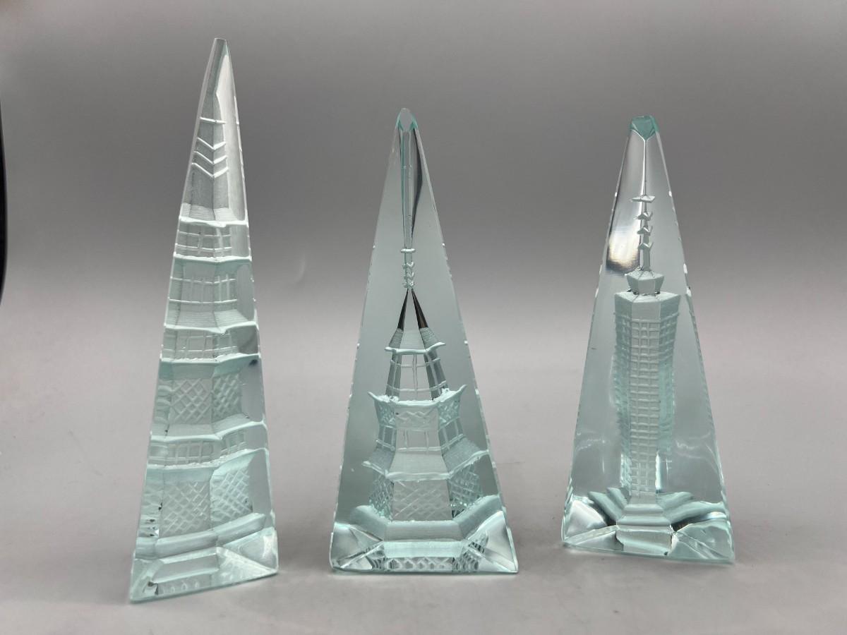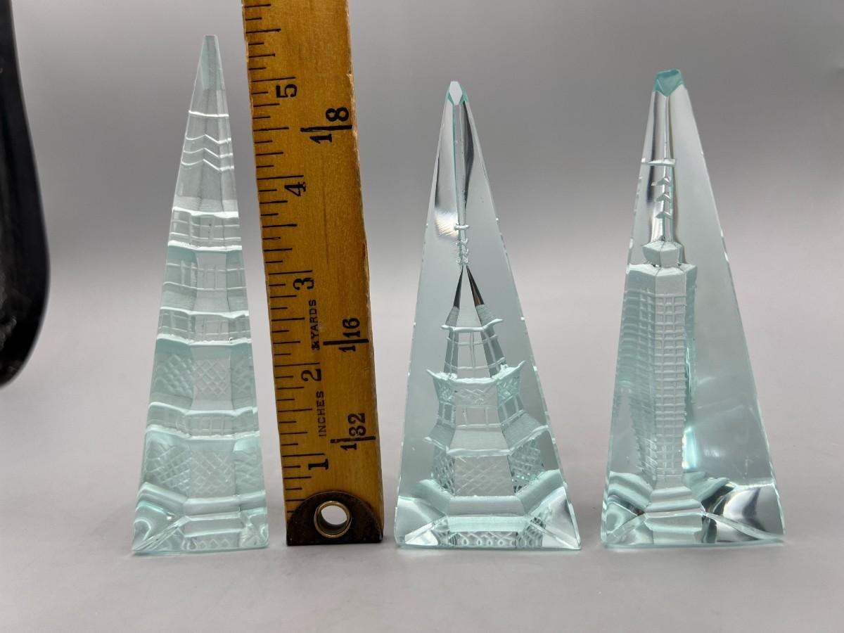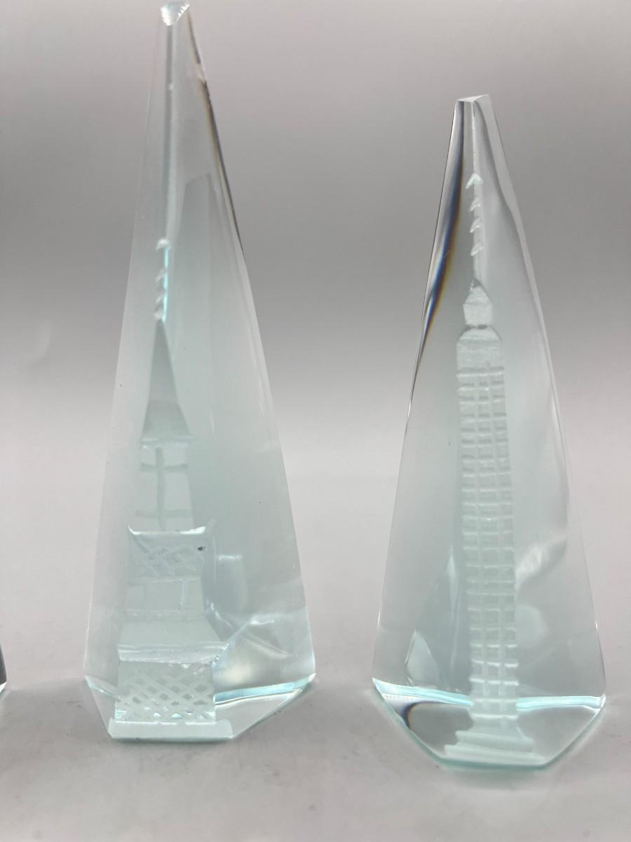 Lot of Glass Prism Etched Building Architecture Monument Souvenirs