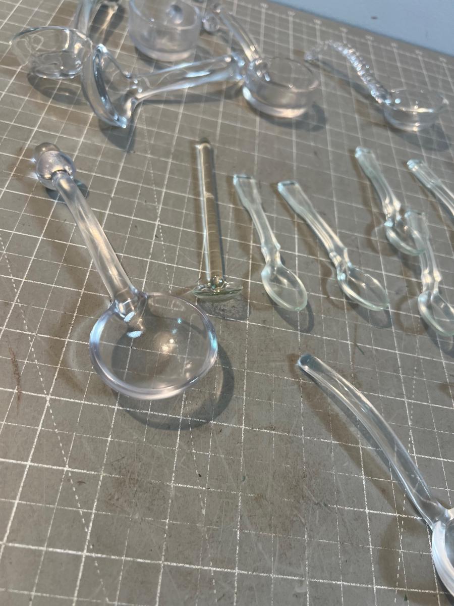 Lot of GLASS Spoons and Dippers. FANCY Collectible In a Glass Jar