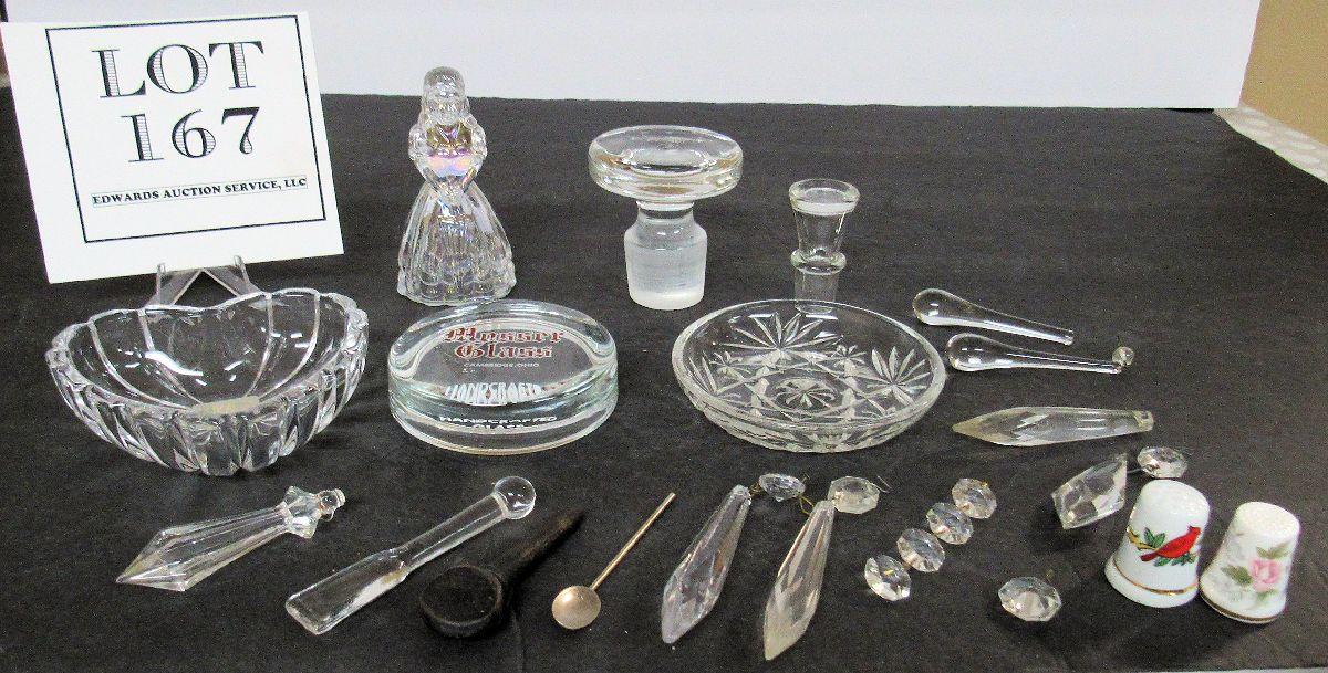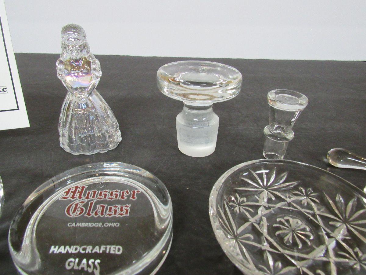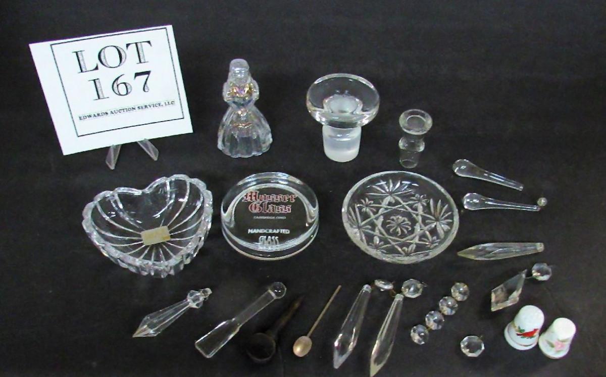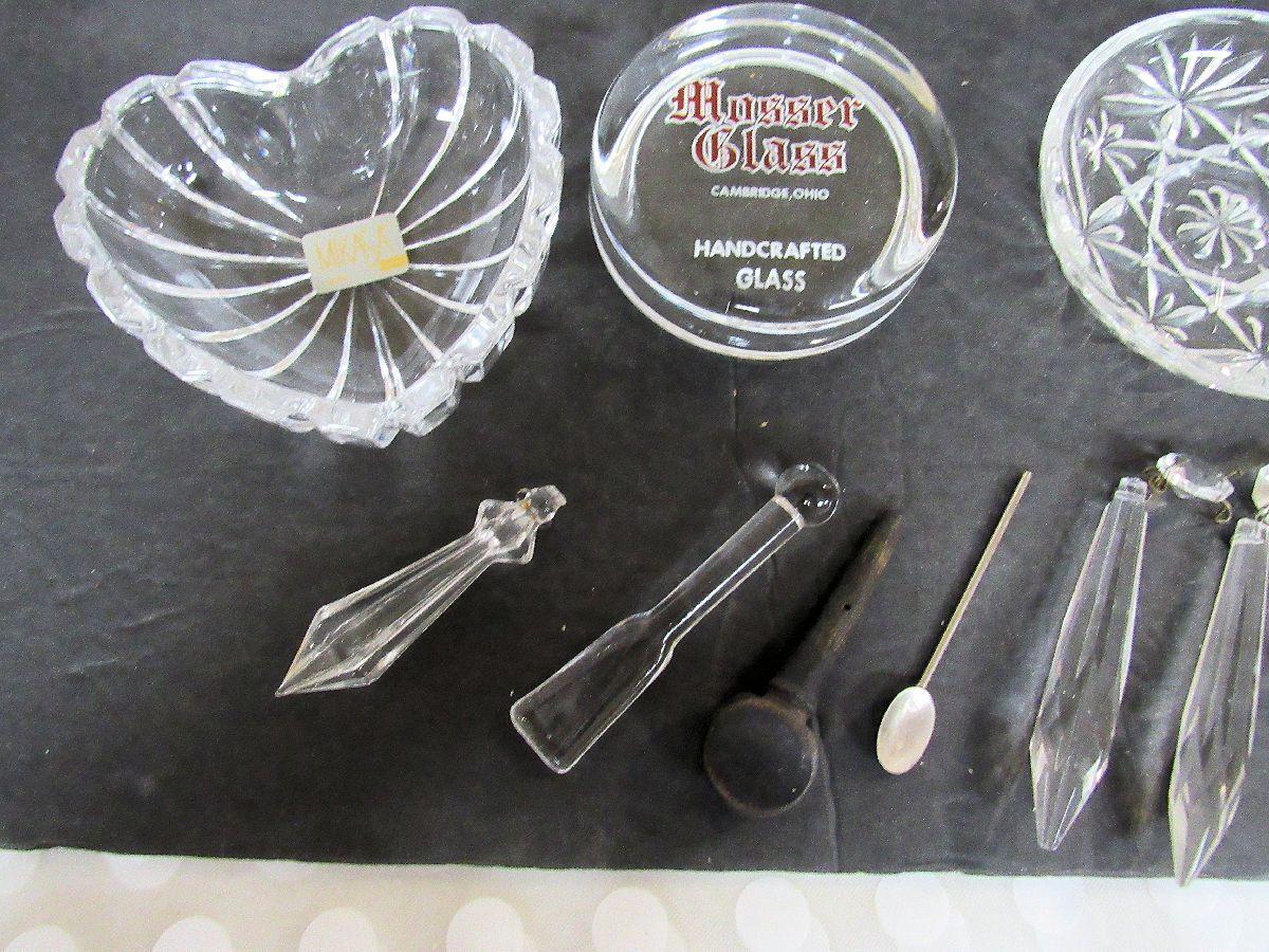 Lot of Glassware: Mosser Glass Paperweight, Prisms, More