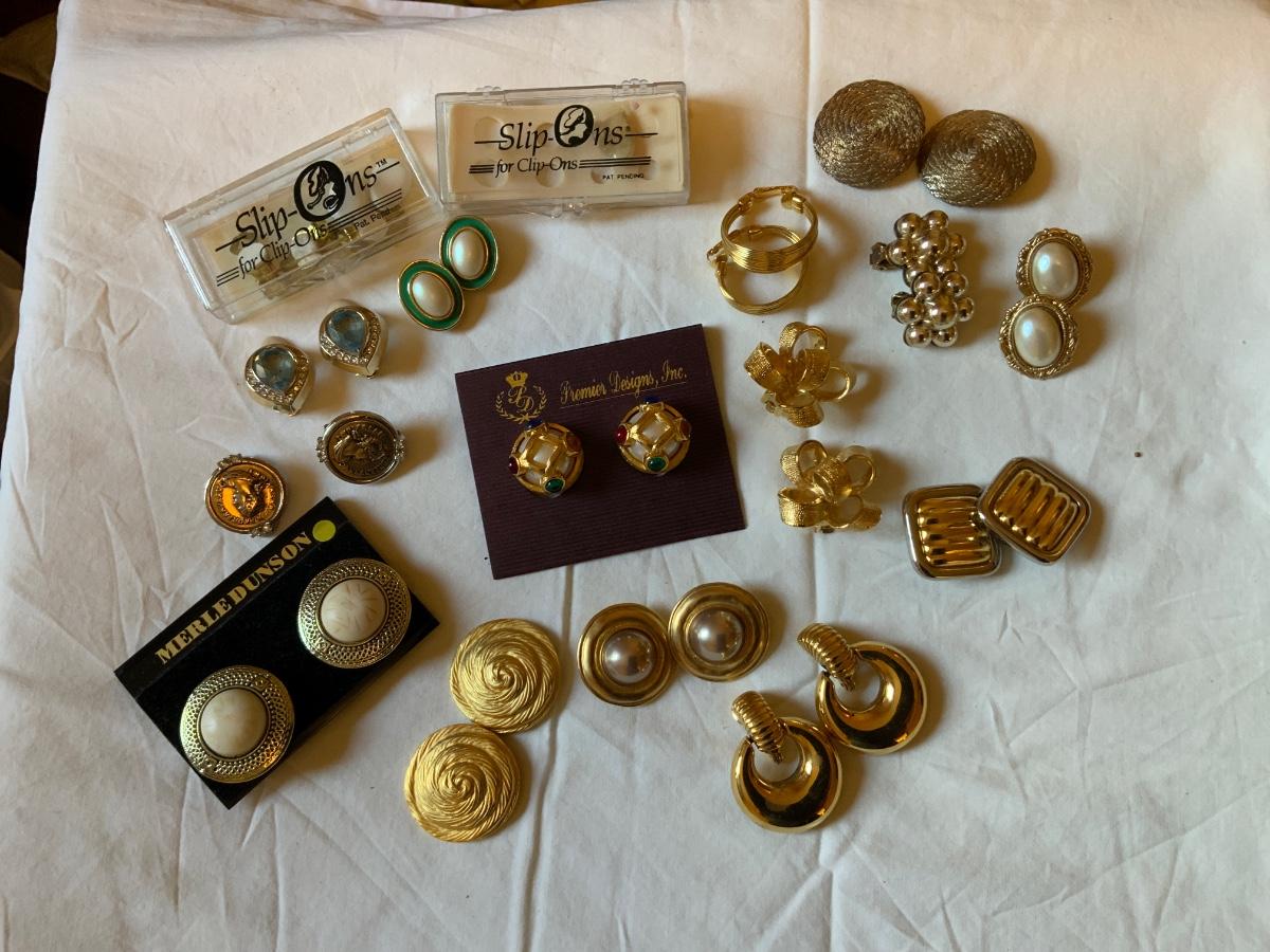 Nice lot of vintage clip on earrings. Some marked with makers marks.