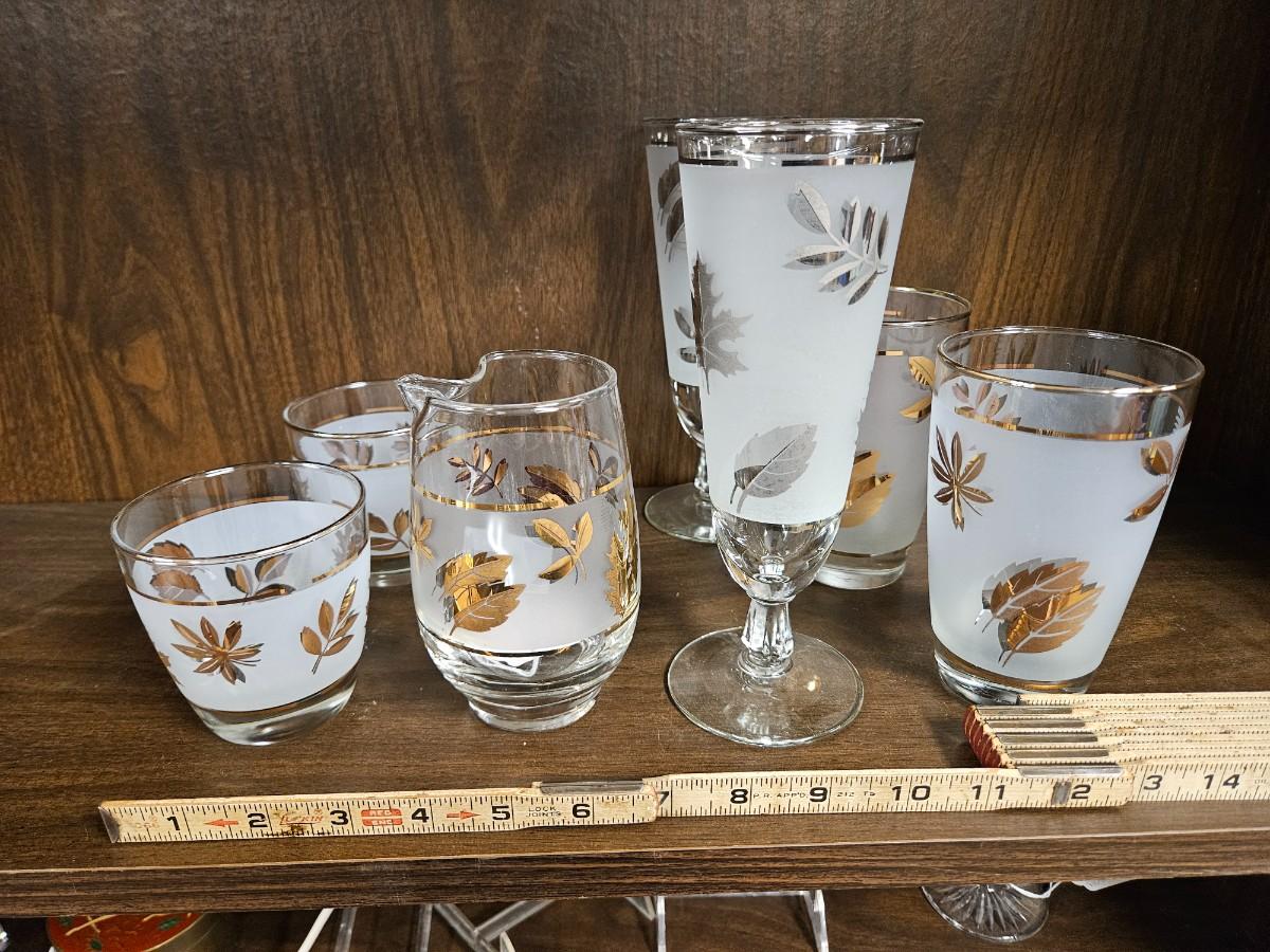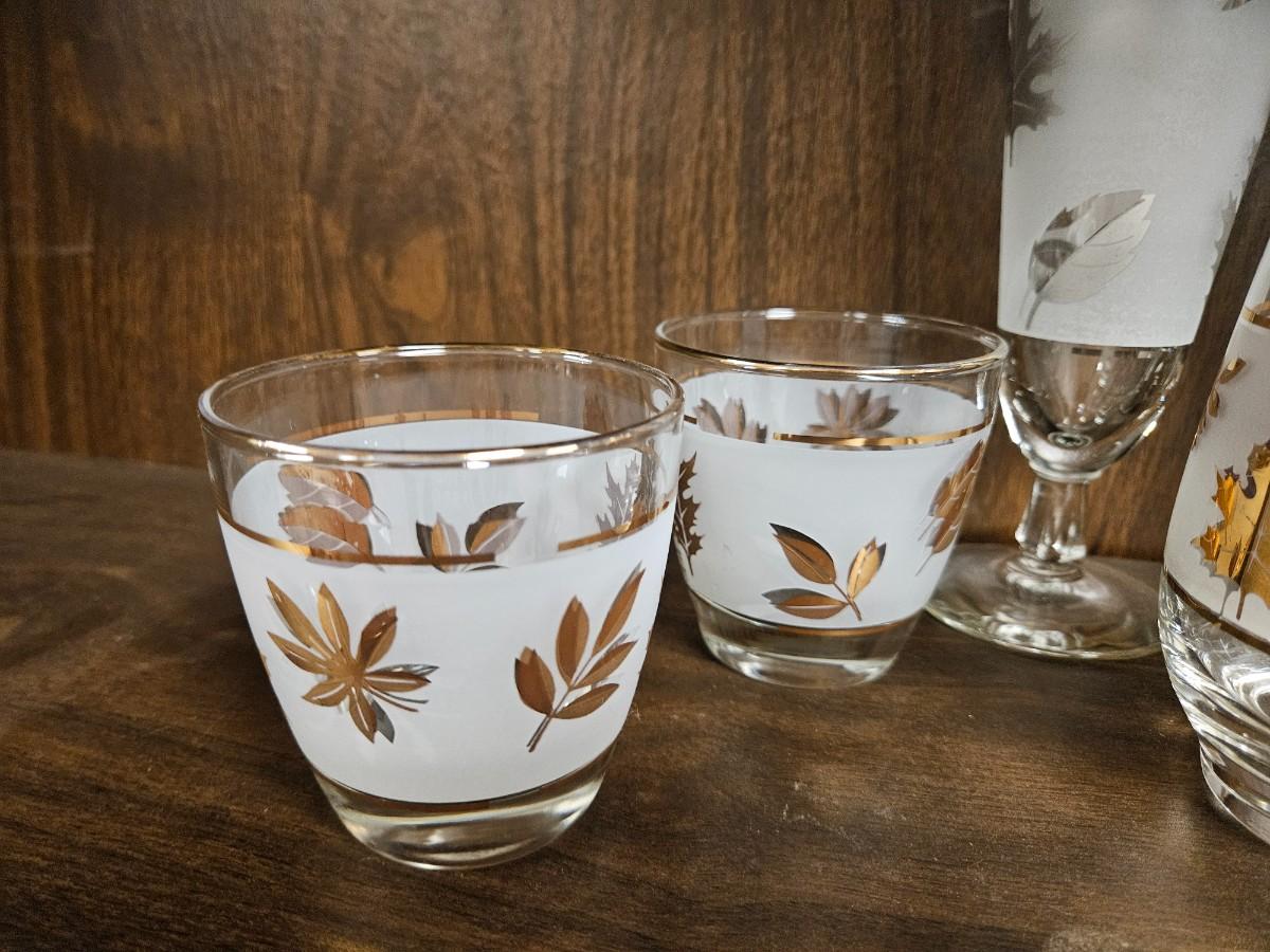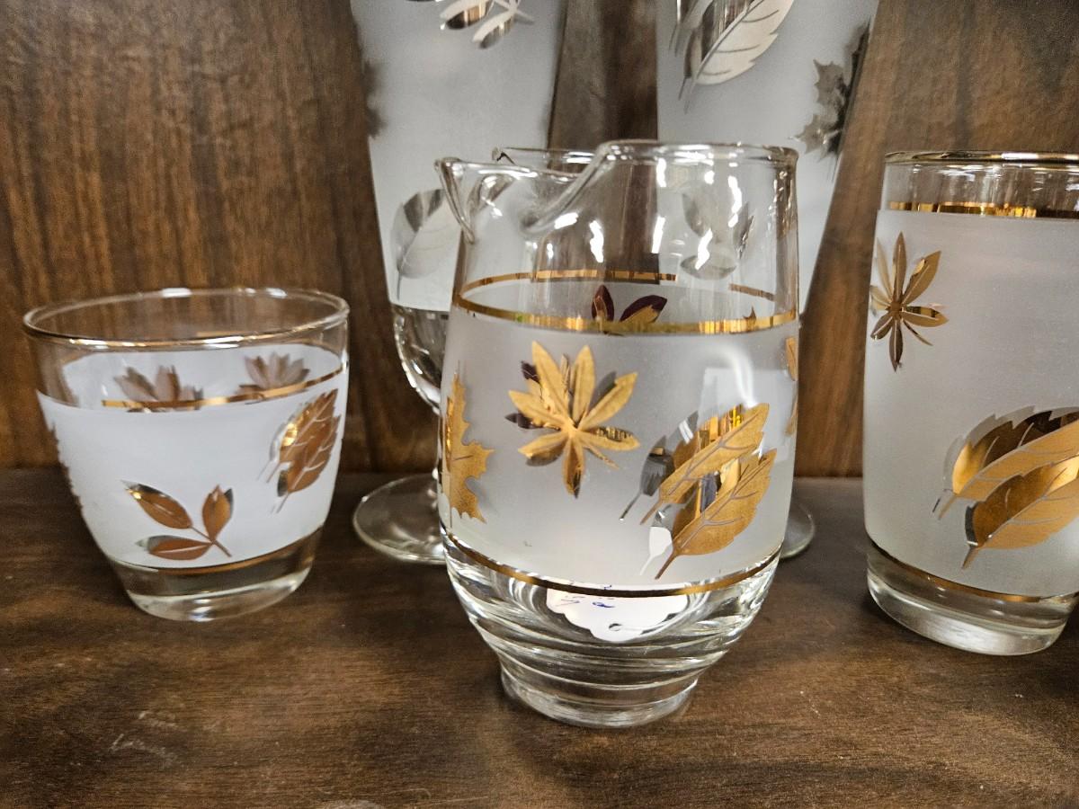Lot of Vintage Gold and Silvertone Oak Leaf Drinkware Including Creamer