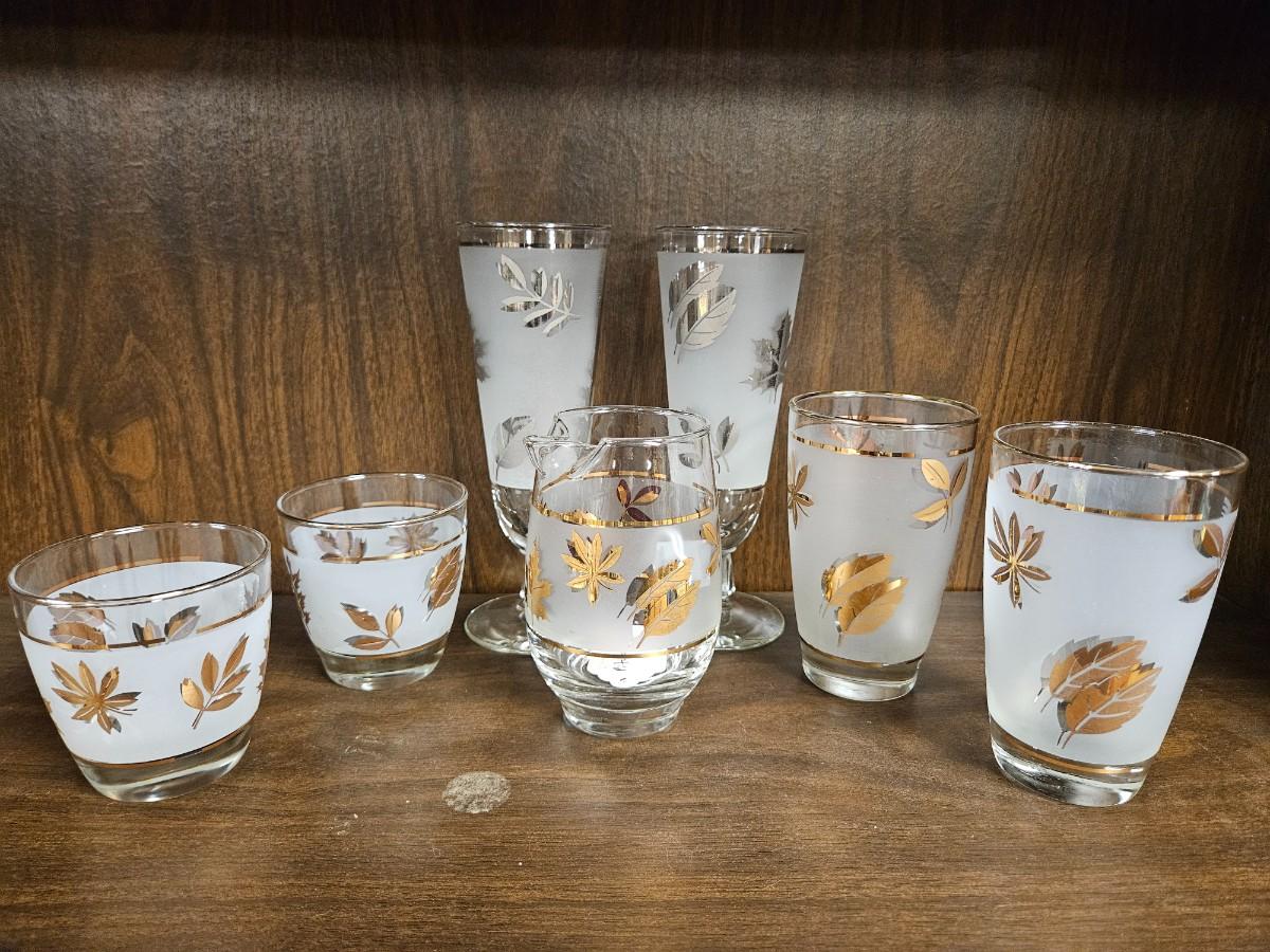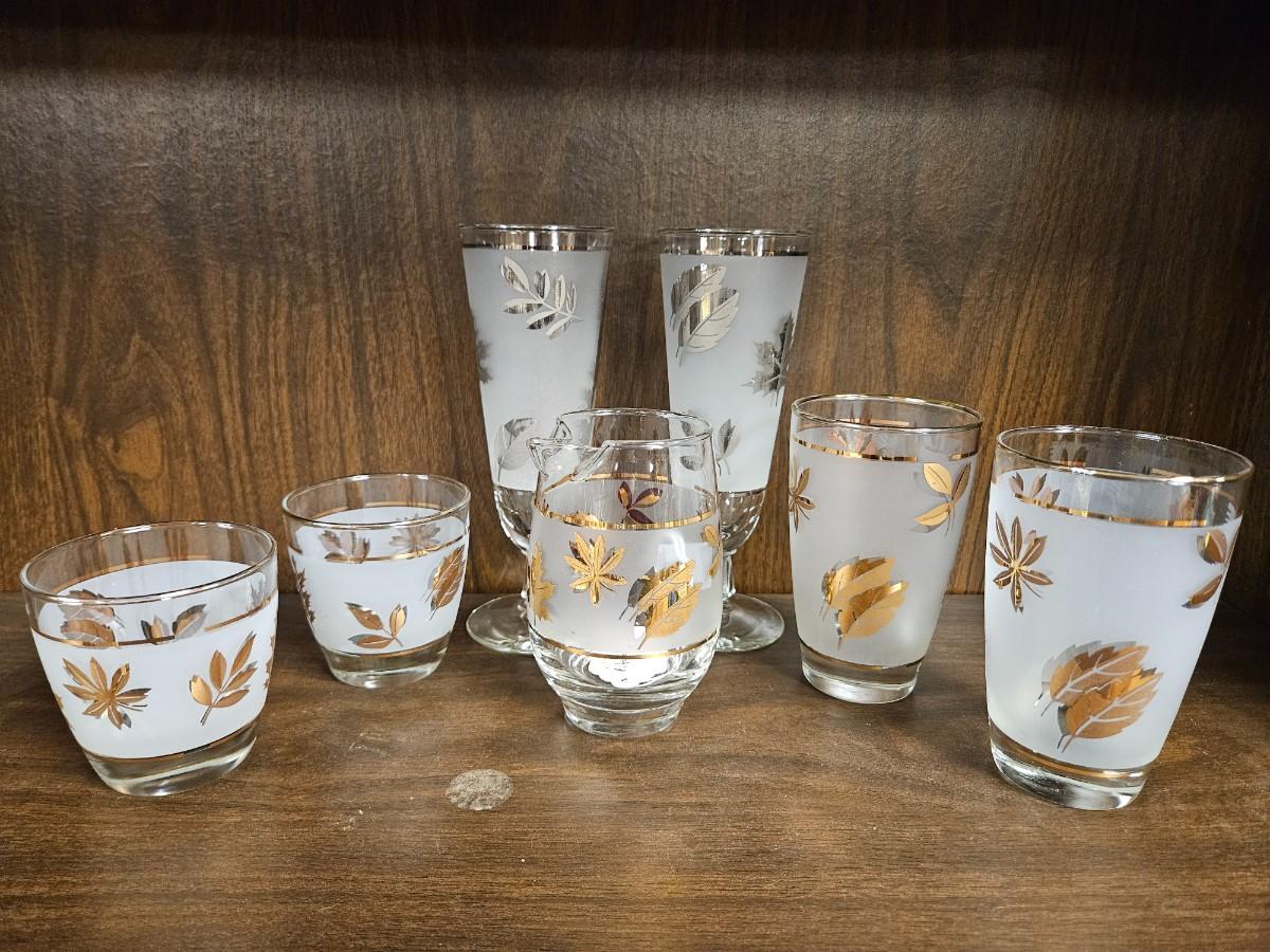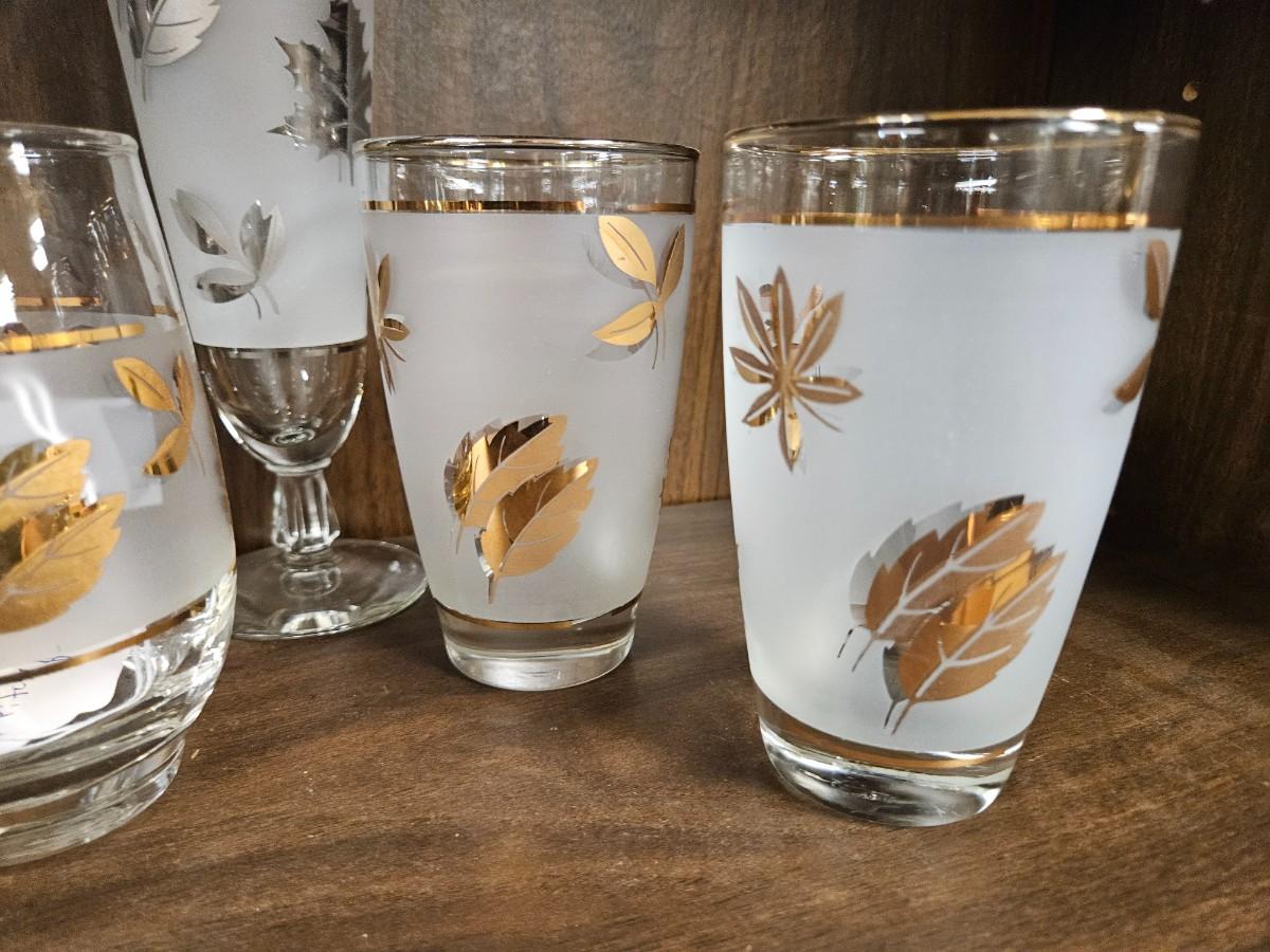 Lot of Vintage Gold and Silvertone Oak Leaf Drinkware Including Creamer